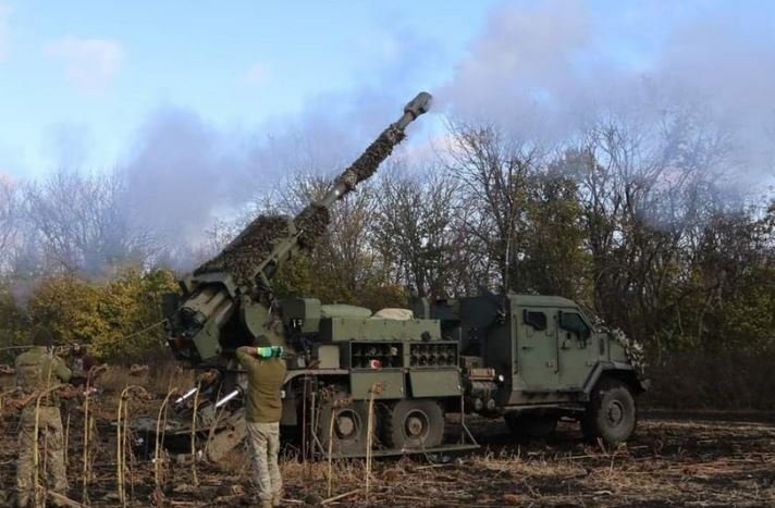Samohybná houfnice Bohdana (nové generace) při použití americké naváděné munice M982 Excalibur ráže 155 mm.