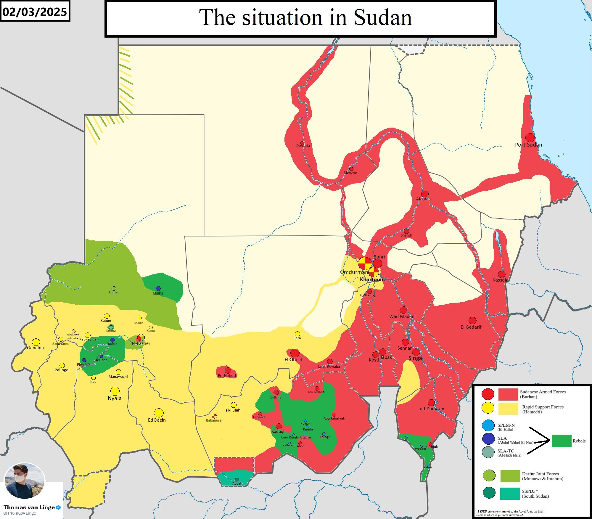 Aktuální situace v Súdánu na začátku roku 2025, nebo můžeme říct ke konci roku předešlého. V minulém měsíci SAF pokračovala v získávání zisků proti RSF a obsadila území kolem města Wad Madani. V Dárfúru ovládly Spojené síly město Zurrug.