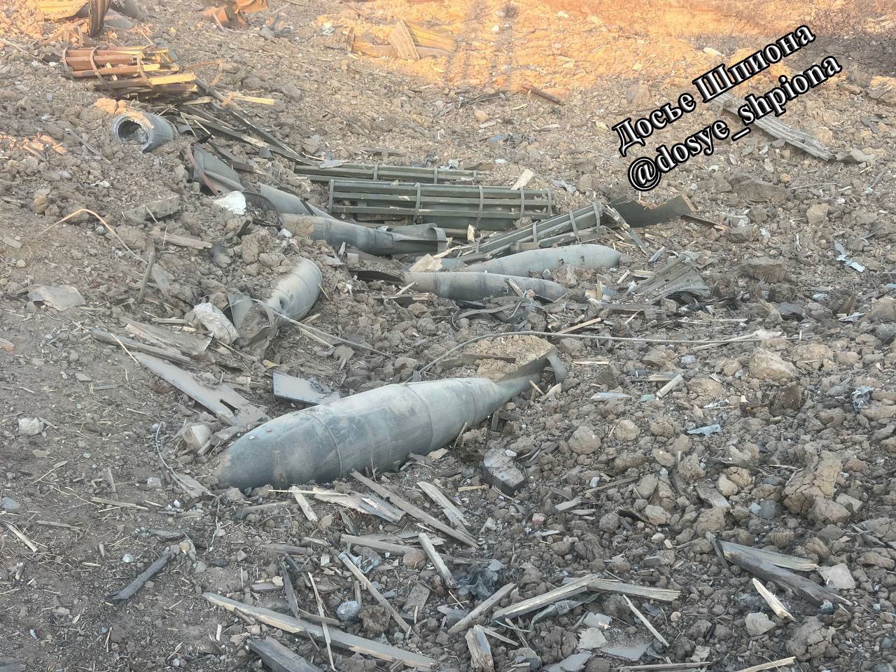 Ještě onen muničák v Morozovsku před výbuchem a detaily po. Mezi pozůstatky najdeme vysoce výbušné bomby FAB-500M-62, palivovo-vzduchové pumy ODAB-500PMW, laserem naváděné letecké pumy KAB-1500LG, rakety vzduch-vzduch R-73 a kontejneru elektronického boje "Chybiny" pro Su-34.