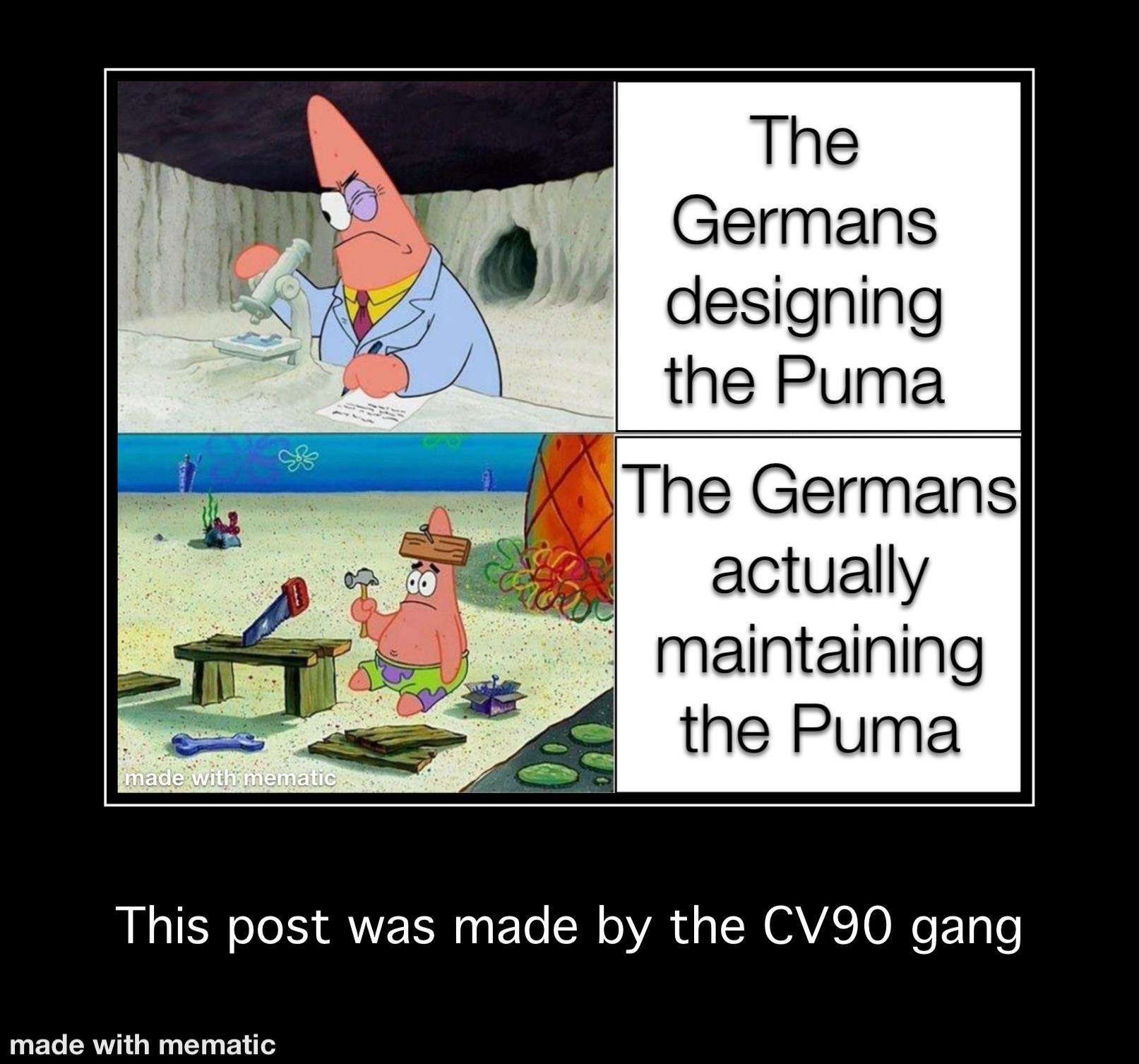 To nejsou, jsou primárně o politice. A jelikož v několika velkých tendrech po celém světě soutěží německé BVP, nicméně Puma to není, tak v politice neúspěch Pumy netkví. Tedy zbývají technické a finanční parametry.
