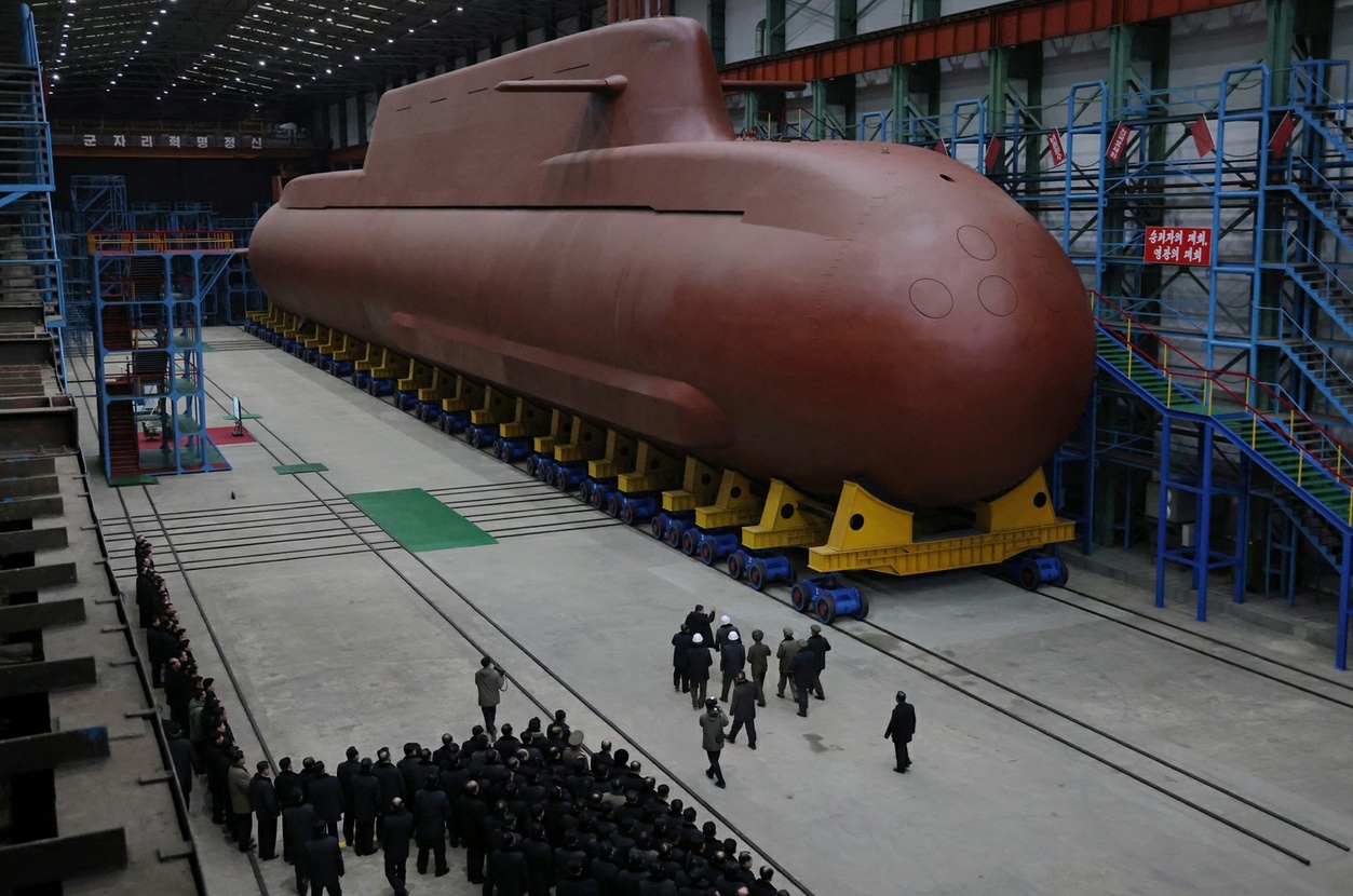 Pchjongjang slavnostně představil snímky nové 8700tunové "jaderné strategické ponorky s naváděnými střelami" ve výstavbě, která se vyznačuje prodlouženou horní nástavbou obsahující pravděpodobně odpalovací trubky raket, a na přídi jsou patrné otvory pro 6 torpédometů.