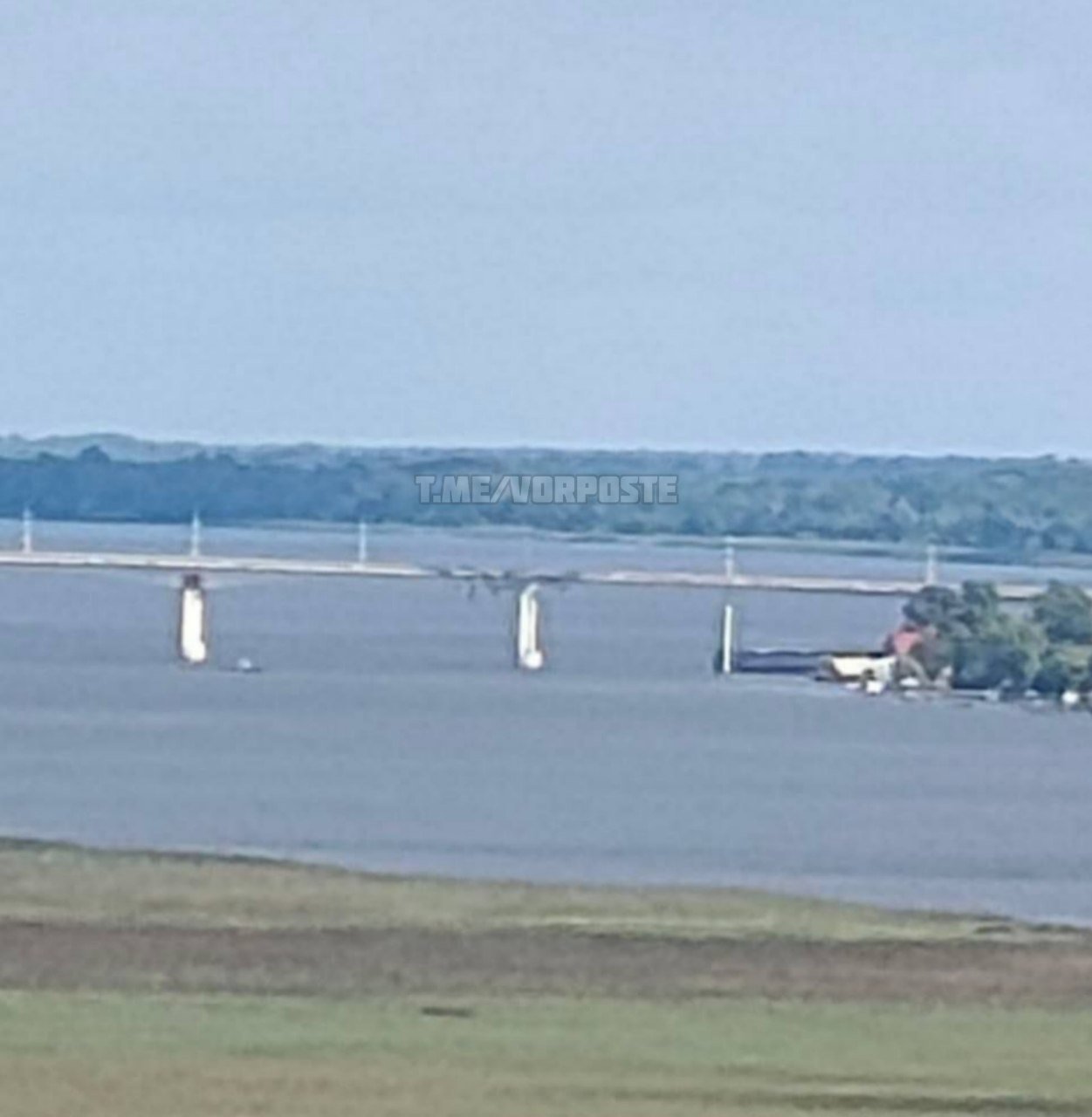 Zniceny poontonovy most okupantov v Dariivke (Cherson):