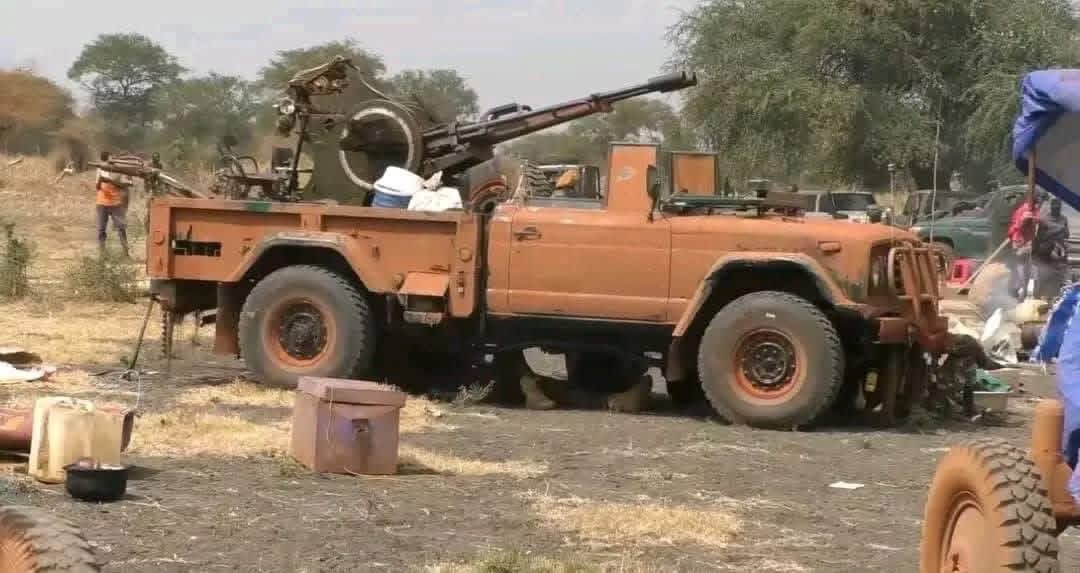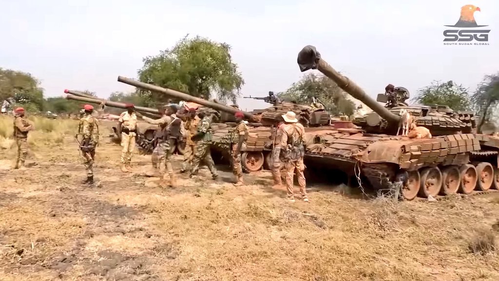 Obrázky ukazují vojenskou techniku, kterou SAF odevzdaly jednotkám SSPDF po ústupu z ropných polí Heglig do jihosúdánského státu Horní Nil, včetně obrněných vozidel, technického vybavení, tanků a protiletadlových kanónů KPV ZPU-4 ráže 14,5 mm.