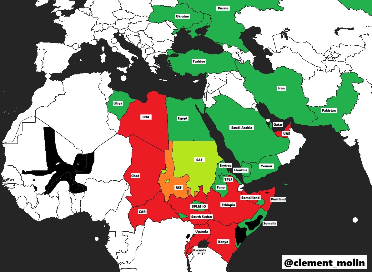 Takže ještě teda obhájíme, že se do toho konfliktu montuje Egypt (jsou z Afriky že jo), ale co takové Turecko, SAE, Írán a Rusko?