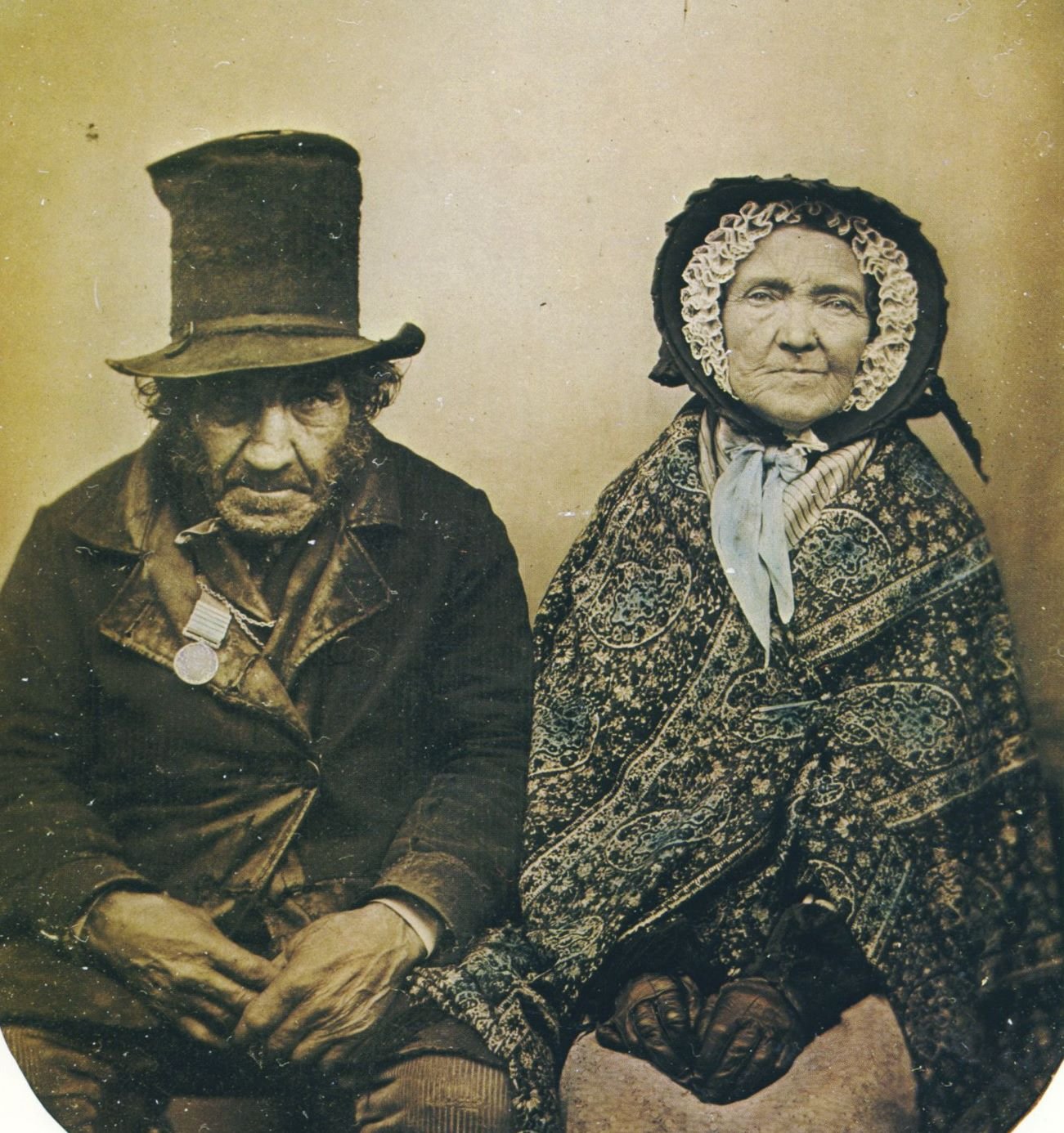Neznámý veterán s manželkou na ambrotypii z roku 1860. Má na sobě cylindr, kabát a medaili, který nám pomůže s jeho identifikací. Mělo jednat o britskou Military General Service Medal (MGSM) se šesti sponami, který byla od roku 1847 udělována veteránům Španělské války za nezávislost (1808-1814), která probíhala na Pyrenejském poloostrově a spadá do období napoleonských válek.