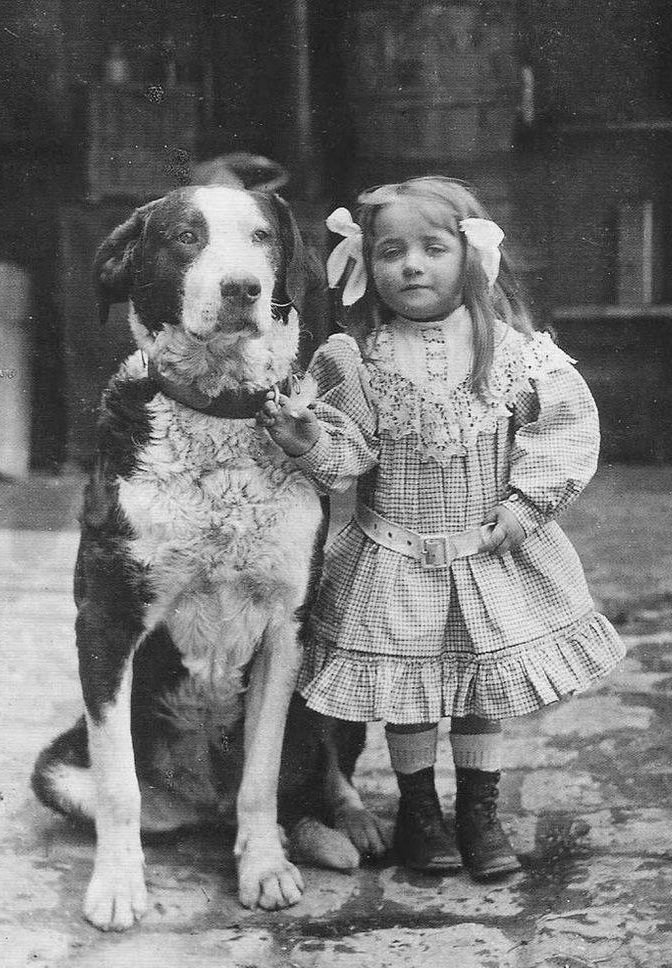 Děvčátko s chlupatým kámošem (kolem roku 1900)