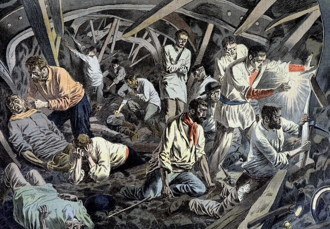 Oblast okolo francouzského Courrieres byla známá těžbou uhlí, kdy okolo roku 1906 z místních důlních šachet horníci vydolovali ročně okolo 17 miliónů tun uhlí. Dne 10.března roku 1906 došlo k jedné z nejhorších důlních katastrof. Okolo třetí hodiny odpoledne došlo k požáru 270 metrů pod povrchem v místě známém jako jáma Cecil. Protože se požár nedařilo uhasit, rozhodli se horníci oblast hermeticky uzavřít a nechat oheň bez kyslíku uhasnout. Následujícího rána bylo v dole 1 775 horníků, když došlo v jámě Cecil k obrovskému výbuchu. V 7:00 vyletělo ústím jámy velké množství materiálu a přímo na povrchu bylo zabito několik lidí a střecha kanceláří dolu byla odhozena z budovy. Plameny šlehaly z každého důlního otvoru a mnoho lidí utrpělo hrozivá popálení. V dole byly stále stovky lidí a horníci a jejich rodinní příslušníci podnikali zoufalé pokusy své kamarády a příbuzné zachránit. Skupina asi 40 mužů zahynula během pokusu o záchranu lidí uzavřených v dole během zřícení důlní šachty, kterou postupovali. U dolu se shromáždil dav asi 20 000 lidí, který čekal na zprávy o svých blízkých. V blízkosti dolu byla zřízena márnice. Trvalo týdny, než byla těla z trosek jámy vynesena a ostatky byly identifikovány. Podle jedné z verzí zahynulo více než 1060 lidí a stovky dalších byly zraněny. 270 lidí nebylo nikdy nalezeno. Jako zázrakem 20 dní po katastrofě byly zachráněno dalších 14 horníků, kteří přežili v podzemním pekle díky jídlu po mrtvých a také ovsu určenému pro koně v dolech. Generální inspektor dolů pan Delafond uvedl ve své zprávě ke katastrofě: "Primární příčinu katastrofy v Courrieres nelze určit s absolutní jistotou. To se obecně děje při katastrofách, kdy všichni svědci nehody zemřou."