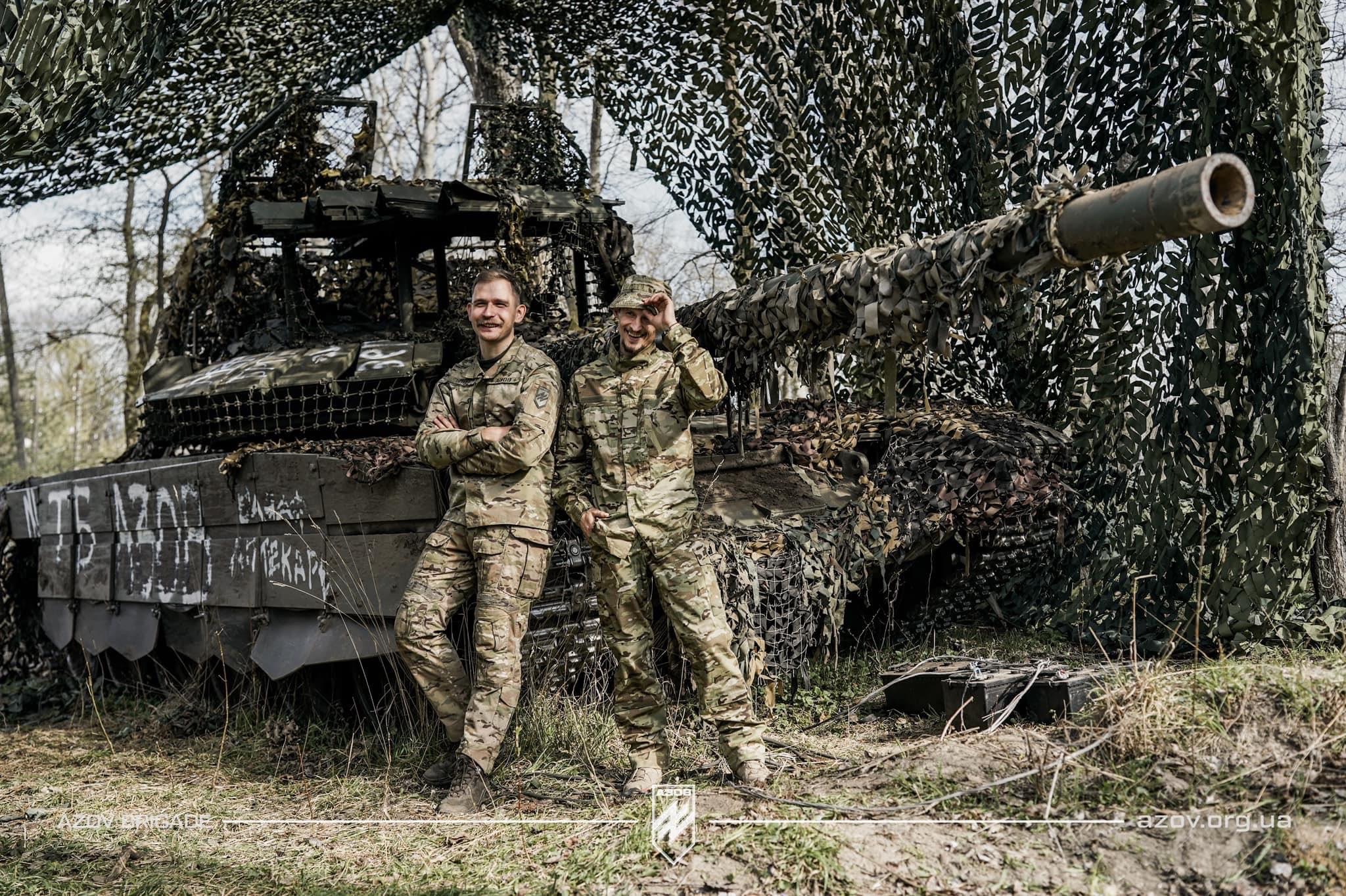 Tankisté Azovu s kořistním ruským tankem T-72B3M.