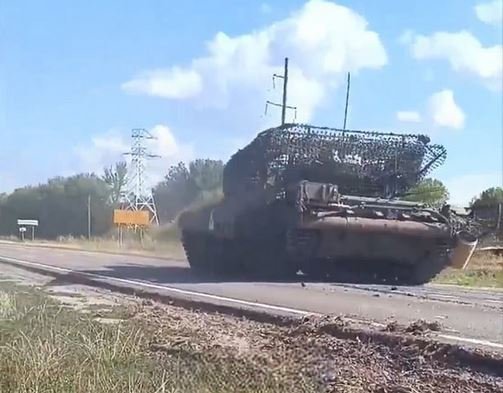 Polskem dodaný tank PT-91 Twardy od 22. mechanizované brigády ukrajinských ozbrojených sil, zde během operací v Kurské oblasti.