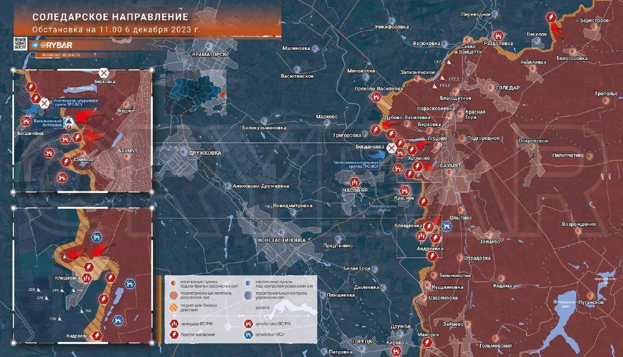 Soledarský směr: úspěšné útoky ruských ozbrojených sil v několika oblastech, situace k 6. prosinci 2023 v 11.00 hod.