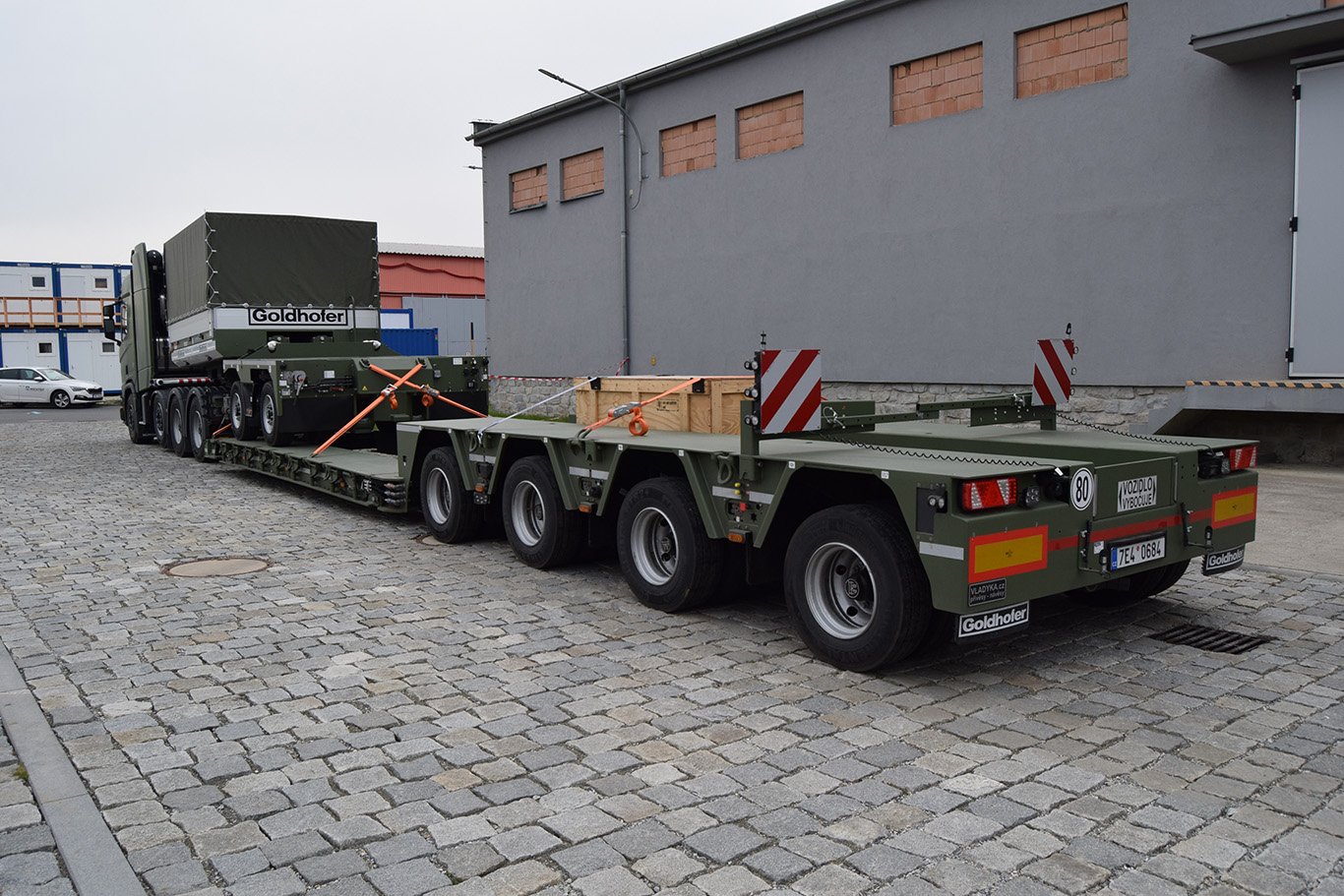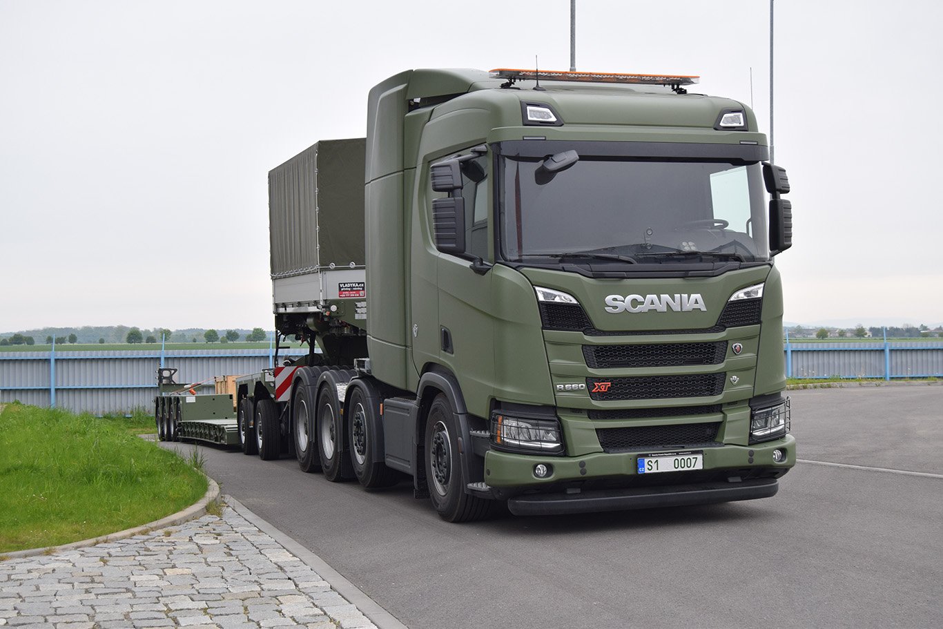Čerstvě dodané tahače Scania R660 A8x4/4 a nízkopodlažní přepravník s nosností 67 tun.