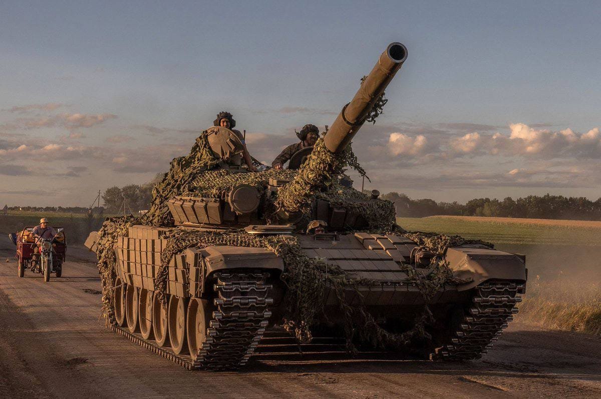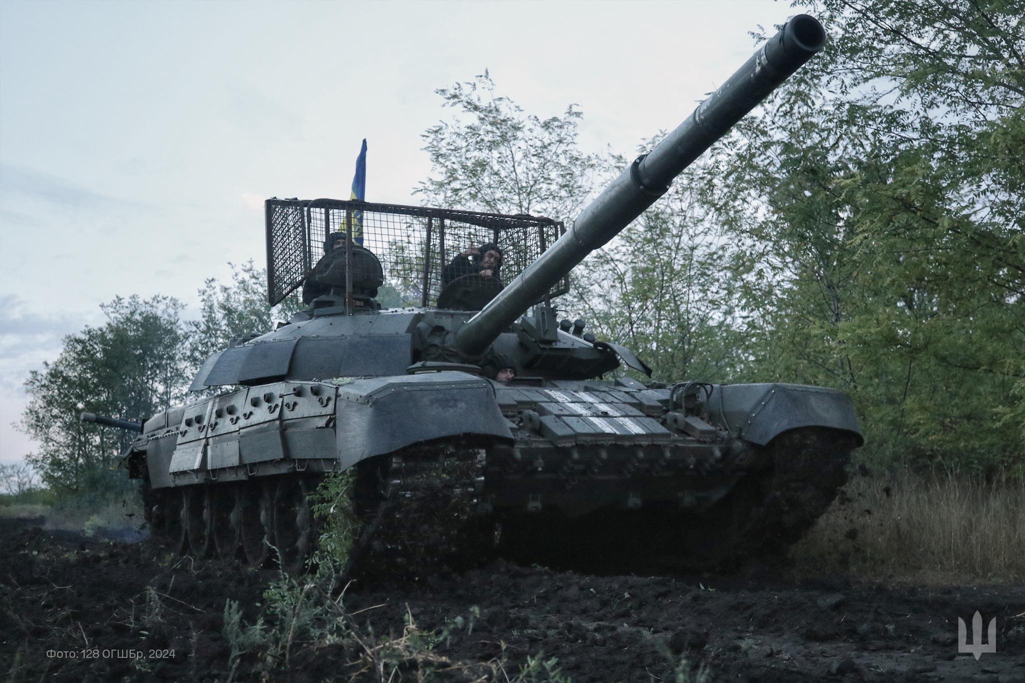 Ukořistěný ruský tank T-90M, nyní v ukrajinských službách, vstupující do Kurské oblasti, v rámci ukrajinské ofenzívy do Ruska.