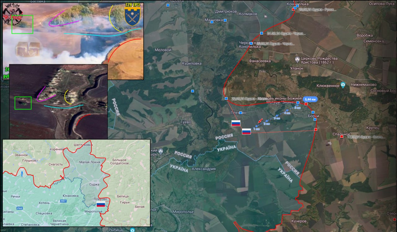 Kurská oblast. V Gluškovském okrese ruské ozbrojené síly vyřadily armádu z pozic u osady Medvěžje. 11 protiútoků nepřítele bylo odraženo.Naše armáda opět přešla do ofenzívy v některých oblastech. Boje probíhají u měst Ljubimovka, Darjino, Nový Put, Nikolajevo-Darjino a Plechovo. Podle dostupných informací naše jednotky zcela vyřadily nepřítele v Plechovu v okrese Sujan a již vyklízejí vesnici.