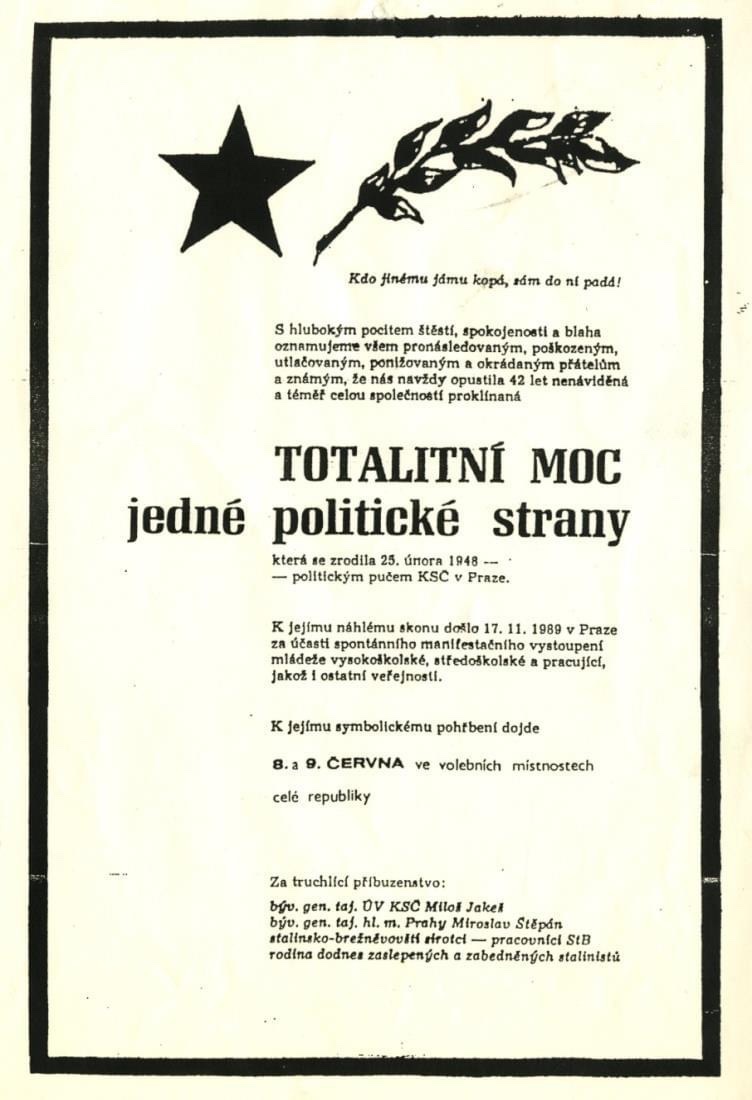 Místo věnců na rakev přijímají se dary na národní účely.