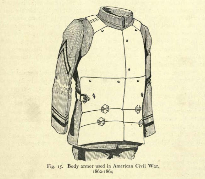 Co se týče snahy o vytvoření neprůstřelné vesty, tak ty se v Americe datují minimálně do období Americké občanské války. Tehdy bylo možno koupit jakési brigantiny, tvořené ocelovými pláty zašitými do látkové vesty. Je pozoruhodné, že výrobci na její přední část našili i pravé knoflíky, aby z vnějšku vypadala jako opravdová vesta nošená pod uniformou. Cílem tedy bylo poskytnout nositeli ochranu jak před kulkou nepřítele, tak i před posměchem spolubojovníků. Tyto neprůstřelné vesty byly inzerovány v tehdejších novinách a je pravděpodobné, že si je mohli dovolit pouze majetní důstojníci. Navíc patrně jen z průmyslovějšího Severu, jelikož státy Unie bylo na mnohem vyšším stupni industrializace a nacházely se zde významné ocelárny a specializované dílničky. V Richmondském muzeu se nachází velice zvláštní brnění z této doby. Patřilo jednomu z vojáků zabitých v zákopových bojích. Bylo vyrobeno v New Haven roku 1862 a vážilo tři a půl kila. Ocelový plech tlustý 1,9mm sice dokázal svého nositele ochránit před kulkami letícími rychlostí až 150 metrů za sekundu, leč svého nositele ochránit nedokázal, neb byl zasažen do zad (zbroj vydržela). Existují i písemné záznamy o vojácích, kterým zachránily život různé pancéřové plechy a provizorní pancéře, leč stále se jednalo pouze o soukromou iniciativu jednotlivců a i v této době vyráželi důstojníci do boje stejně nechráněni jako prostí vojáci.