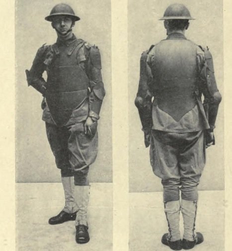 Na mnohem lepší úrovni byl, již zmíněný projekt "Sentinel" od Dr. Bashforda Deana a jeho týmu z Metropolitního muzea. O přilbě jsme již mluvili, ale součástí zbroje byl i celý kyrys, který chránil tělo nositele. Konstrukcí se prakticky jednalo o kopie středověkých zbrojí a je otázkou, zde se nejednalo pouze o muzejní exponáty. Patrně se ale jednalo o repliky z dílny zbrojíře Daniela Tachauxe, tak jako u popsaných prototypů přileb. Pokud se pozastavíme u Dr. Deana, je pozoruhodné, jaké zbroje zmiňuje ve své knize "Helmets and Body Armor in Modern Warfare", která vznikala v době těsně po válce. Krom historických zbrojí, spojeneckých zbrojí používaných ve Velké Válce a samozřejmě vlastních konstrukcí, které popisuje velice detailně, zde popisuje i velice raritní konstrukce, u niž je velice pozoruhodné, kde se k informacím dostal. Zevrubně zde popisuje a načrtává prakticky všechny ochranné pomůcky používané v Německé armádě, patrně z ukořistěných kusů. Zmiňuje zde i Kruppovy pojízdné pancéřové štíty a střelecké zákopové štíty, které vznikly krátce před Válkou, a u prvního z nich se jednalo o slepou uličku ve válečnictví, byť později rozvíjenou. Bohužel z našeho pohledu, nemá žádné informace o zbrojích a přilbách vyráběných v Rakousko-Uhersku, byť i zde se vytvářely velice zvláštní konstrukce. Překvapivě zde ale zmiňuje i Japonské pancíře používané za Rusko-Japonské války v roce 1905, byť se jednalo o velice okrajovou záležitost. Zpět ale k Americkým zbrojím. Ač i zde vznikaly různé lehčí neprůstřelné pancíře, krunýře nebo vesty z kompozitních materiálů nebo vrstev látky, primárně se jednalo o komerčně nabízené produkty. Ty se snažily najít si zákazníky u vojáků jak v tuzemsku, tak i v zámoří, kde byla velká poptávka o tyto výrobky. V moderních úpravách, se koncept nezastavitelného železného muže, "Iron Mana", objevuje v americké popkultuře ale i vědeckých článcích, až do dnešních dní.