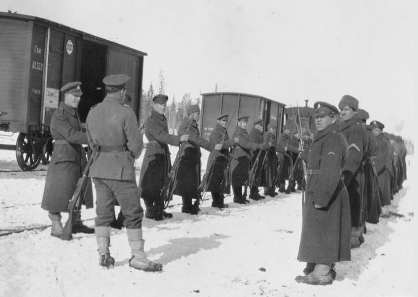 Brestlitevský mír (3. března 1918). Expediční síly vyslané na ochranu ruského území byly najednou cizí interventi a Britové se svými spojenci museli místo Finů a Němců čelit formující se Rudé armádě. Pro zajímavost uvedu, že představitelé britské a francouzské vlády se rozhodli pro vojenskou intervenci v Severním Rusku hned ze tří důvodů: Chtěli ochránit zásoby materiálu v Archangelsku, aby padly do německých nebo bolševických rukou; aby zahájili ofenzívu na záchranu československých legií uvízlých podél transsibiřské železnice, a obnovit východní frontu; a s pomocí československých legionářů porazit Bolševiky a podpořit místní antikomunistické síly. Jelikož však Britové a Francouzi neměli dostatek vojáků, požádali o pomoc amerického prezidenta