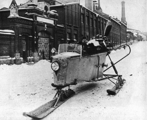 Konstrukci aerosání si většinou spojujeme až s druhou světovou válkou, překvapivě ale byly nasazeny carskou armádou již v předchozím konfliktu, ba vznikaly ještě mnohem dříve. Průkopník letectví Sergej Sergejevič Něždanovskij (1850-1940) se dlouhou dobu zabýval mimo jiné myšlenkou využití vrtulového pohonu na lyžovém podvozku. Od roku 1873 studoval na technické škole v Moskvě, ale studium přerušil a začal se věnovat výzkumu v oblasti letectví a praktické mechaniky. V polovině 90. let se zabýval vývojem nových řešení vrtulového pohonu. Roku 1893 se zabýval představou letounu s křídlem tlustého profilu. Roku 1904 nahradil kola automobilu lyžemi a vrtuli spojil s motorem pomocí řetězového převodu. V roce 1916, jiné zdroje uvádějí již roku 1914, testoval vozidlo, které se mělo na sněhu pohybovat pomocí hnaného řetězového pohonu. Ten připomínal velice odlehčený housenkový pás, řízení probíhalo pomocí ližiny v přední části, spojené s řídítky, podobně jako u bicyklu. Měrný tlak byl přibližně 0,05 kg/cm2, tedy dostatečný pro jízdu na sněhu. Něždanovskij nebyl jediným průkopníkem. Již v roce 1907 se objevily první automobily na lyžích. Pocházely od letecké společnosti DUKS a navrhl je inženýr Dokučajev a Meller. Do roku 1914 se podobných konstrukcí objevilo zhruba patnáct. Navrhoval je Brilling, Bilinkin, Sikorskij a podobně, všichni činní v oboru letectví. Igor Sikorskij (1889-1972), již ve svých dvaceti letech vytvořil aerosaně, poháněné dokonce dvěma vrtulemi. Na přelomu let pak 1909-1910 vozil po zasněžených kyjevských ulicích 2 až 3 cestující, v saních se vzadu umístěným motorem s tlačnou leteckou vrtulí. Při těchto vyjížďkách zkoušel různé kombinace motorů (15-25 hp) a vrtulí, které hodlal využít u letounů. Počátkem roku 1911 se uskutečnily vůbec první závody aerosaní. Předsedou poroty byl Nikolaj Jegorovič Žukovskij (1847-1921). Od roku 1912 probíhala sériová výroba aerosaní objednaných carskou armádu, ve strojírenském závodě Russo-Balt v Rize. Tamní konstruktéři nevyužili automobilového podvozku, ale postavili zcela nový trup, uzpůsobený od počátku pro pohyb na sněhu. Přední pár lyží byl opět řiditelný. Část vyrobených vozidel byla údajně vyzbrojena kulomety. V této době se objevují aerosáně i ve Francii, Rakousko-Uhersku, Německu a jinde. Po vypuknutí války, našly aerosaně uplatnění i na frontě. Již v zimě 1914-15 byly použity pro průzkum, spojení a další operativní úlohy velení. Působily rovněž v německé armádě, jelikož generál Hindenburg už před válkou předpokládal, že v Rusku mohou aerosaně poskytnout vojsku nedocenitelnou pomoc a pozorně sledoval práce v této oblasti, osobně se zúčastňoval testování i přejímání aerosaní. Saně se osvědčily hlavně v rovinaté krajině, na zamrzlých jezerech a řekách, kdežto v kopcovitém a lesnatém terénu měly potíže s pohybem. Svou užitečnost prokázaly natolik, že i v době občanské války je používal jak rudí i bílí, ale také intervenční vojska. Zima na konci roku 1918 se vyznačovala extrémním množstvím sněhu, který prakticky paralyzoval veškerou dopravu. Proto již na začátku roku 1919, byla bolševiky vytvořena Komise pro stavbu aerosaní KOMPAS, která spolu se specializovanými instituty, měla zahájit výrobu dvaceti aerosaní. Do roku 1923 zde byla vytvořena celá řada různých konstrukcí, jejich aerosáně ale přišly na frontu až v samém závěru občanské války. nechvalně se proslavily při potlačení vzpoury kronštadtských námořníků v březnu 1921.