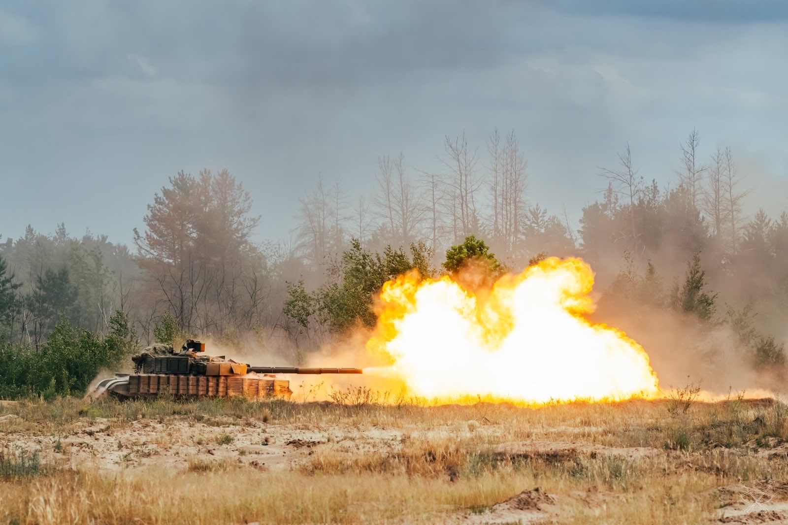 Ukrajinský tank T-64BV model 2017 zapálený kdesi ve směru na Charkov. Není patrné co požár způsobil, ale hoří i všude kolem něj (a to i dost daleko). Vnější palivové nádrže jsou ale neporušené, stejně tak jako samotné pancéřování. Video v odkazu.