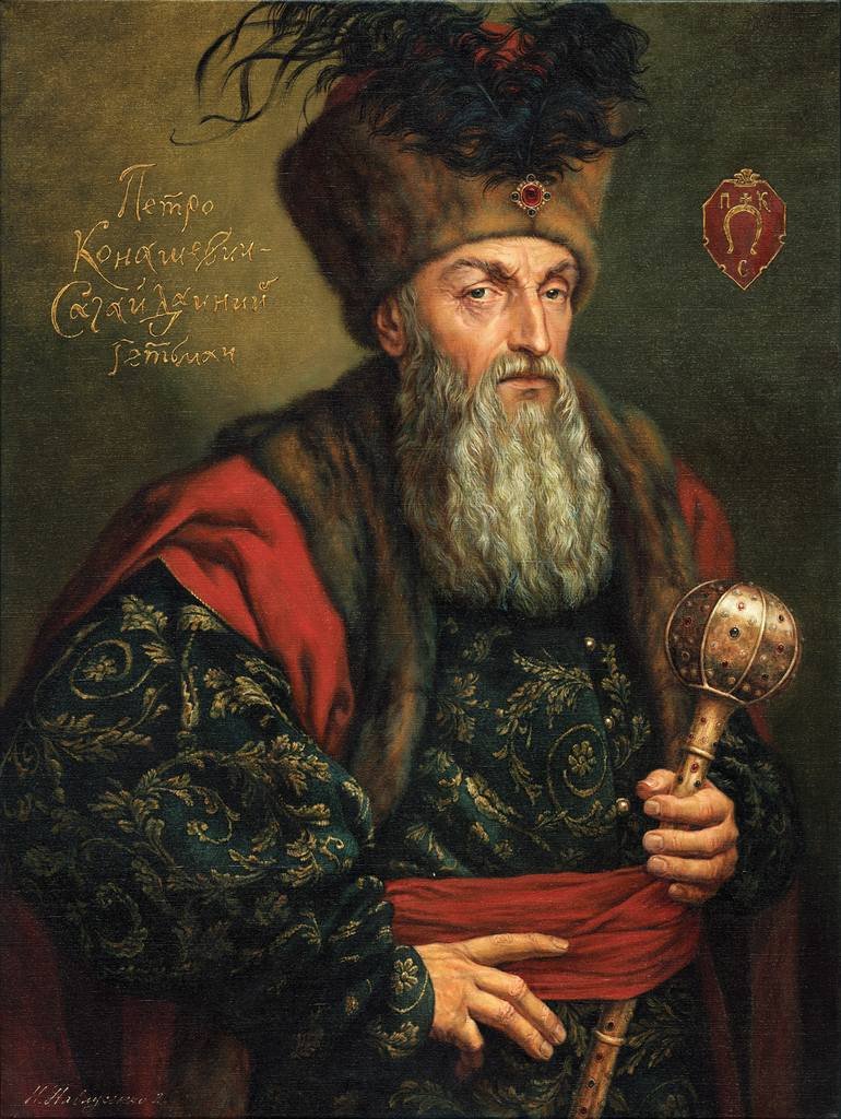 Petr Konaševič-Sahajdačnyj (1582-1622) byl od roku 1616 hejtmanem záporožských kozáků, vynikající vojenský velitel Polsko-litevské unie jak na souši, tak i na vodě. V roli kozáckého hejtmana přetvořil nevyzpytatelné vojsko v regulérní armádu. Pod jeho velením se kozáci, pravoslavné duchovenstvo a rolníci začali vyvíjet do jednotného národa. Jeho vojenské jednotky hrály významnou roli v bitvě u Chotynu proti Turkům a pokusu korunního prince Vladislava získat pro sebe roku 1618 Moskevský trůn.