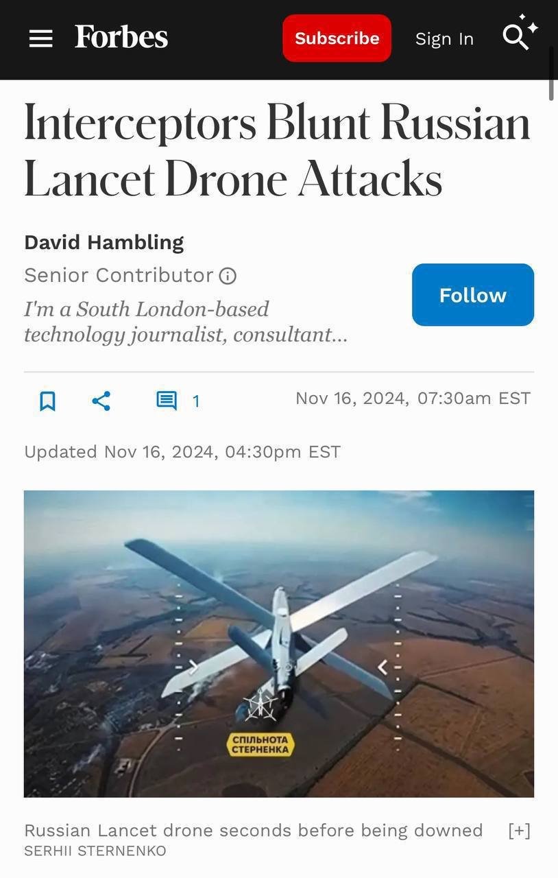 Forbes píše, že počet bezpilotních letounů Lancet používaných Rusy klesl o 75 %. Důvodů je mnoho, od sankcí proti majiteli společnosti Alexandru Zacharovovi až po údery na továrny uvnitř Ruska. Hlavním z nich je však sestřelování okřídlených dronů. Jedním z prvních, kdo zavedl účinnou taktiku a technologii proti dronům Zala a Orlan-10, byla jednotka operátorů bezpilotních letounů brigády Pomsta Státní pohraniční služby v lesnické oblasti Serebrianka a tato taktika se rozšířila na celé ukrajinské obranné síly.