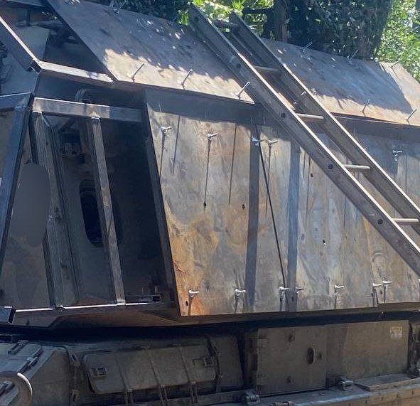 Ruská samohybná houfnice Msta-SM dostala na věž pořádnou nálož pancéřové ochrany. Mezi nevýhody, kromě hmotnosti tohoto provedení, si můžete všimnout nutnosti vystoupit z vozidla, abyste mohli sklopit clonu a připevnit hlaveň do cestovní polohy.