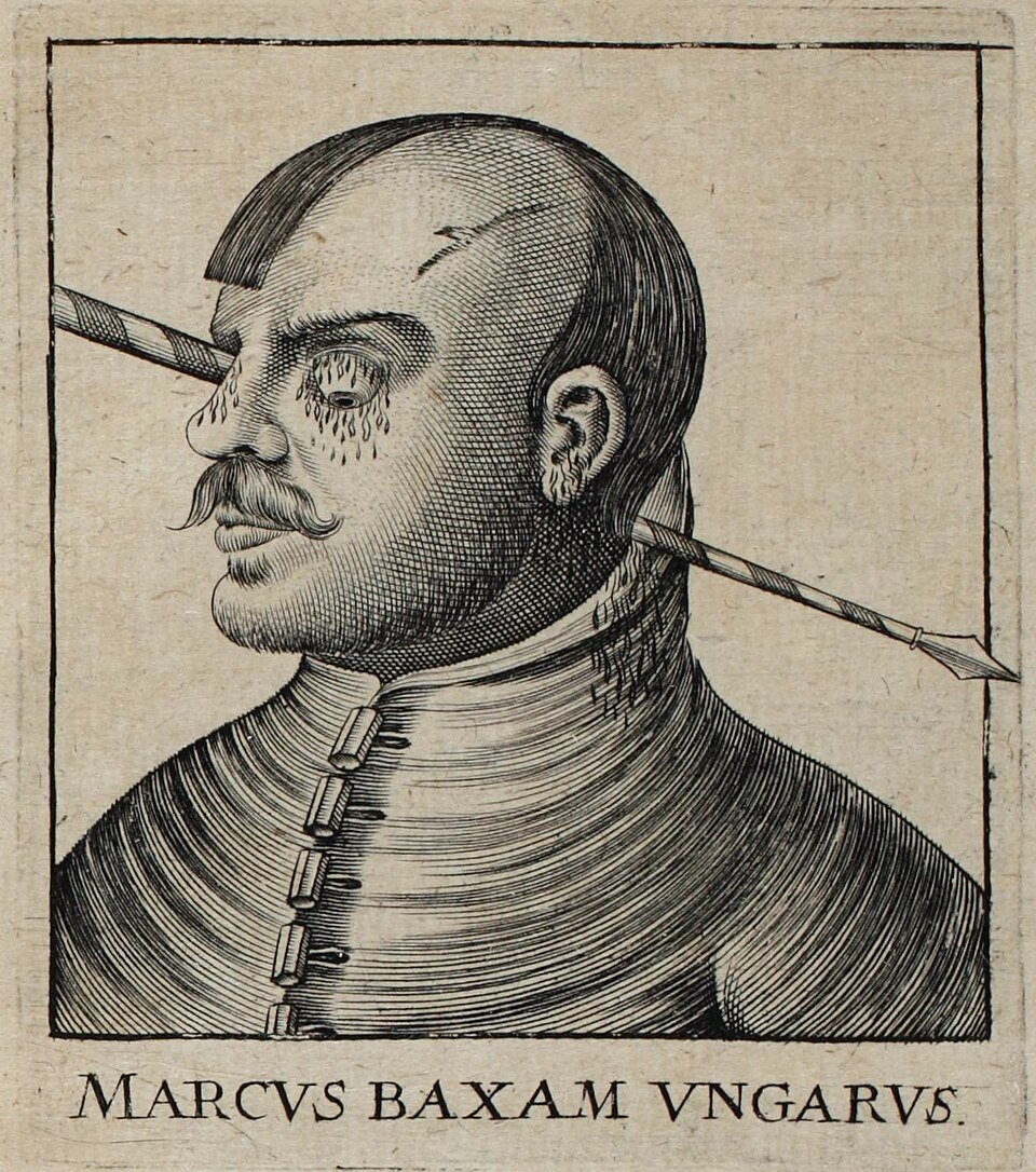 Uherský šlechtic Gregor Baci je známý jako muž s proraženou hlavou dřevcem. Portrét pochází od neznámého německého malíře, kolem roku 1550. Nutno podotknout, že muž není mrtvý, ale žil ještě rok po tomto zranění. Na úvod dodejme, že tento netradiční obraz uložil do své sbírky kuriozit arcivévoda Ferdinand II. Tyrolský a do dnešních dní je uložený na zámku Ambras v Innsbrucku. Jeho autor není znám a celkový formát je 39 × 31 cm. Jméno Gregor Baci je patrně zkomoleninou jména Gergely Paksy. Jednoznačně byl zasažen dřevcem do pravého očního důlku, projel lebkou a vystoupil až u krku. Vyboulené, nateklé a zakrvácené levé oko je důsledkem jevu zvaného Karotid-kavernózní sínusovitá píštěl (CCF), což je abnormální spojení mezi tepnou v krku a sítí žil v zadní části oka. Tyto žíly na zadní části oka přenášejí krev z tváře a mozku zpátky do srdce a nacházejí se v malých prostorách za očima nazývanými cavernous sinuses. Někdy se mezi těmito žilkami a jednou z vnitřních nebo vnějších krčních tepen, které se rozkládají po obou stranách krku, vytváří abnormální kanál. Takto vzniklým kanálem zvaným píštěl, může protékat krev. Rovněž dochází k tlaku na nervovou funkci která řídí pohyb oka. Tímto jevem se tedy přesně vysvětluje pro z druhé oka vytéklá krev, je vyboulené a dle rytiny (viz níže) se otáčí do nepřirozené pozice. CCF může být klasifikován jako přímý nebo nepřímý. Přímé se tvoří mezi částí vaší vnitřní krční tepny a žilkami uvnitř vašeho kavernózního sinusu. U tohoto typu píštěle je obvykle vysoký průtok krve. Tento typ je nejběžnější. Druhou možností (což je asi tento případ) je, že se tvoří mezi jeskyněmi svalových žil a větvemi karotidové arterie v membránách, které obklopují mozek. Míra průtoku krve v těchto píštělích je obvykle nízká. Není zcela jisté, jak tento šlechtic ke svému zranění přišel. Jeden zdroj tvrdí že pochází z turnaje, druhá zpráva z roku 1621 tvrdí, že jej husar utržil v boji s Turky. Zmiňuje se, že muž žil ještě celý rok a dobové tvrzení potvrzují i moderní lékaři. Dle obrazu by vyhotoven 3D model, z něhož je patrné, že dřevcem nebyl zasažen žádný životně důležitý orgán. Navíc jsou přikládány desinfekční účinky i samotné olověné barvě, jíž bylo dřevo pomalováno. Existuje ještě mědirytina z roku 1598, na níž je muž jmenován jako Marcus Baxam (Márk Baksa).