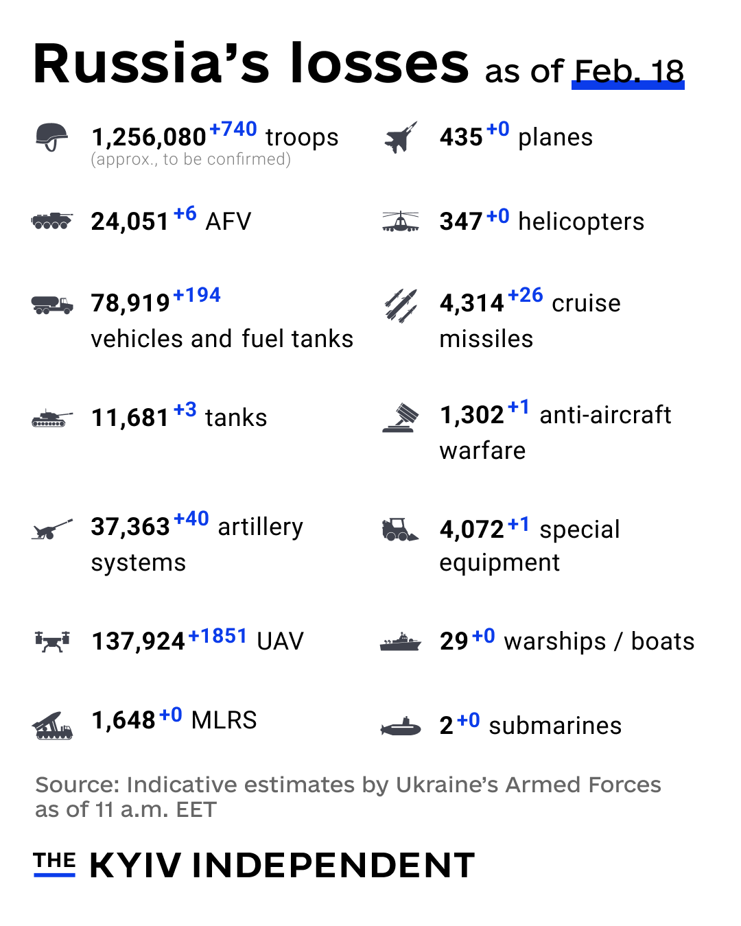 - Dronaři Zbrojních sil Ukrajiny oficiálně potvrdily, že 15. února zasáhli ropný exportní terminál „Tamanněftogaz“ v Krasnodarském kraji. Operace byla provedena ve spolupráci se speciálními jednotkami a vojenskou rozvědkou. V místě byly zaznamenány výbuchy, hodnocení škod stále probíhá.
