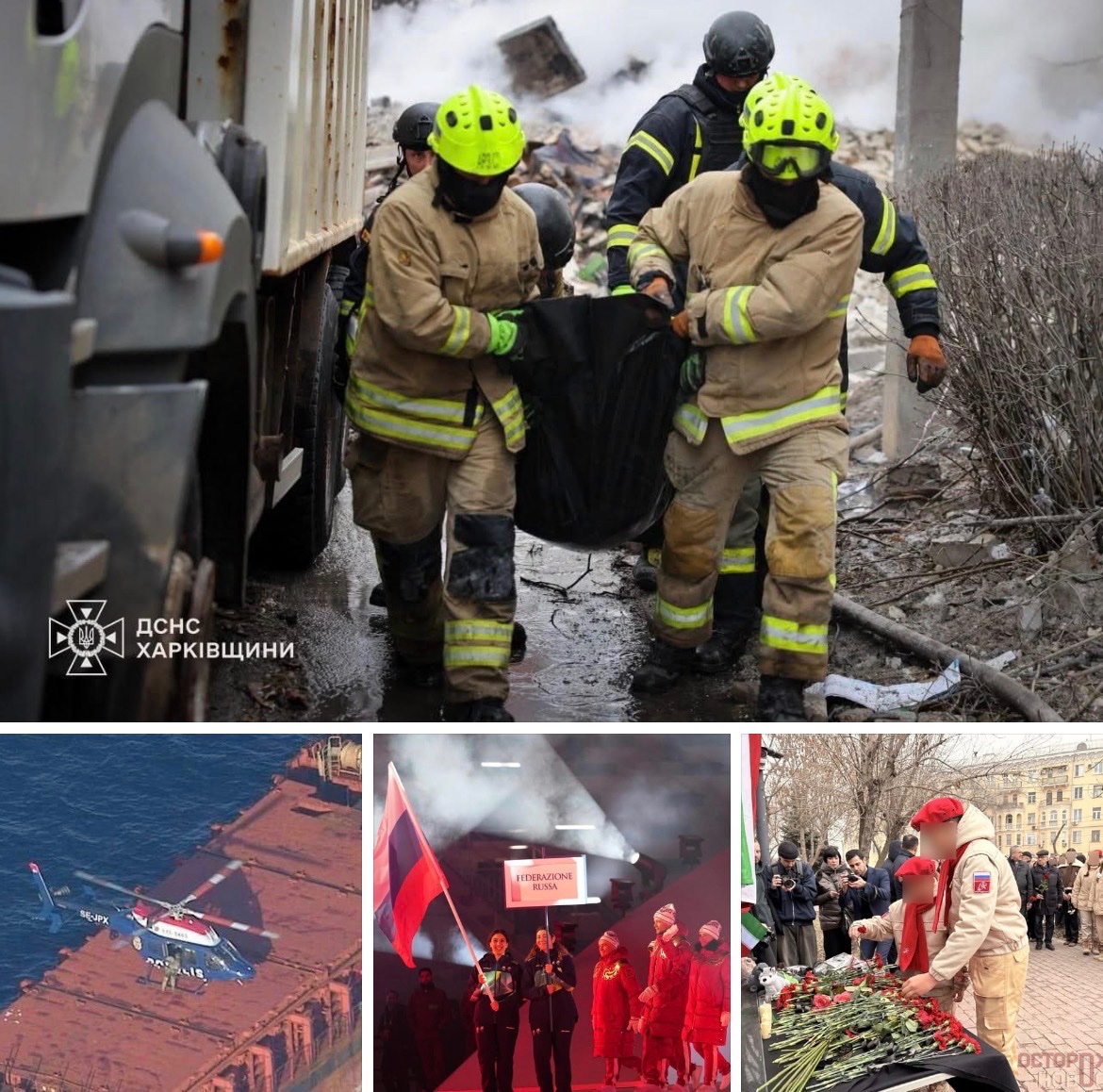 - V Charkově zasáhla ruská raketa pětipodlažní bytovku. Počet obětí se prozatím vyšplhal na 11. Mezi mrtvými jsou také učitelka základní školy a její 9letý syn nebo 13letá dívka a její matka. Desítky dalších lidí jsou zraněny. Záchranáři stále prohledávají trosky a pátrají po dalších obětech.