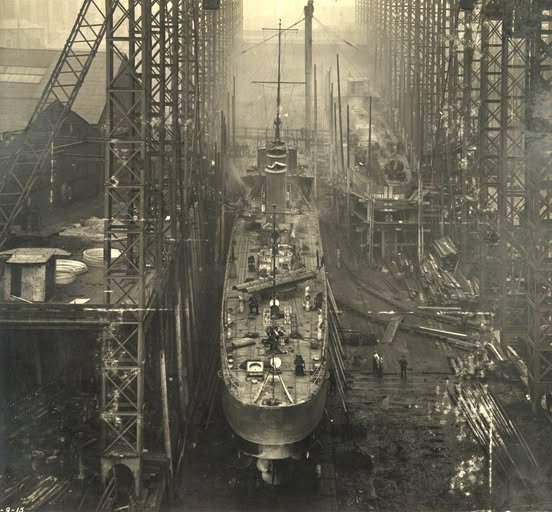 HMS Opal se připravuje ke spuštění na vodu ve východní loděnici společnosti William Doxford & Sons Ltd v Sunderlandu v září 1915.
