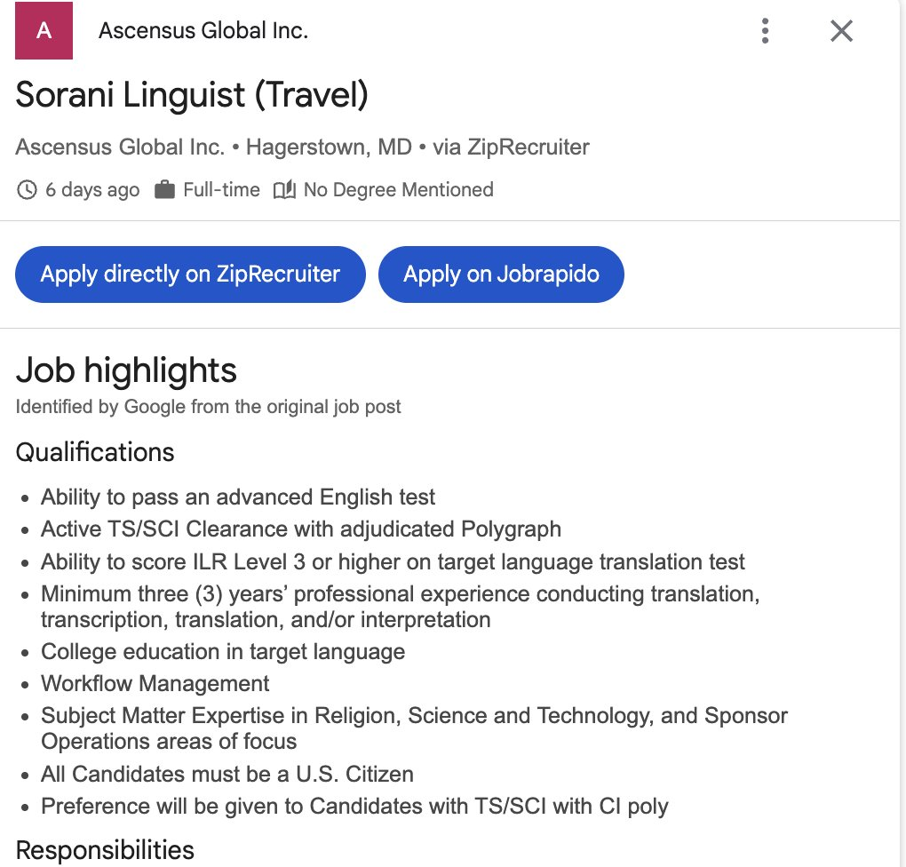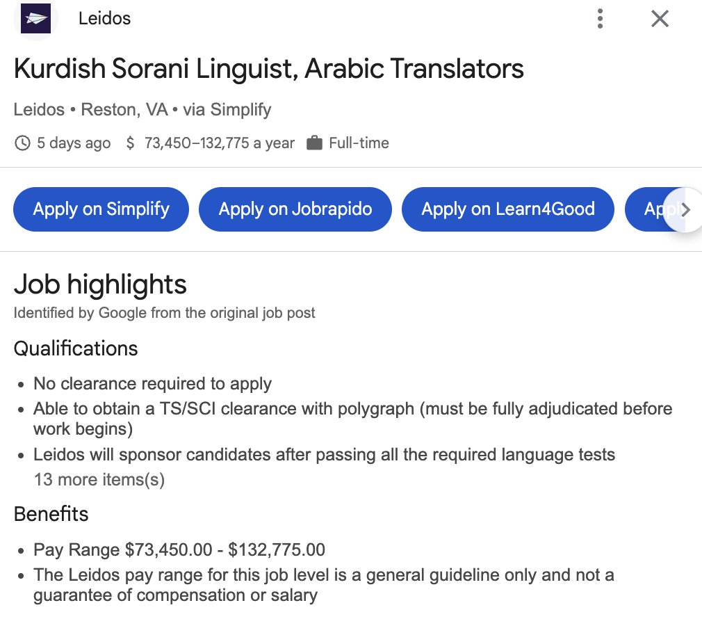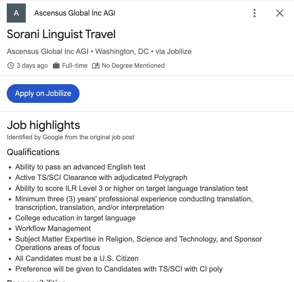 Ale vypadá to na aktivitu v kurdské části. Nabídka míst v oblasti obrany s požadavky na kurdštinu.