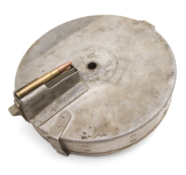 Kulomet BREN osazený velice neobvyklým diskovým zásobníkem na 100 ran. U diskového zásobníku jsou náboje uspořádány do kruhu v plochém disku obvykle špičkou do středu. Příkladem může být například kulomet Vickers K, Lewis nebo z něj vycházející Děgťarjov DP. Diskové zásobníky byly určeny pro protiletadlové použití kulometů BREN, kde kapacita 100 nábojů zamezila nutnosti zbraň přebíjet. S nasazeným zásobníkem navíc nebylo možno použít původní mířidla. Diskové zásobníky nazývané "Speed Drums" vznikly za 2. světové války ve dvou variantách, MkI a MkII, s hlavním rozdílem v nakládací/navíjecí rukojeti. Raný model měl samostatný pružinový navíječ, zatímco MkII měl navíječ zabudovaný v bubnu, což zajišťovalo, že byl vždy po ruce.