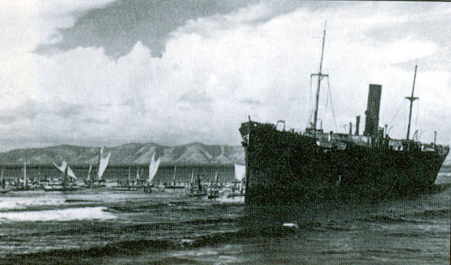 Vrak parníku Pruth u Port Moresby sloužící k nácviku nových způsobů bombardování