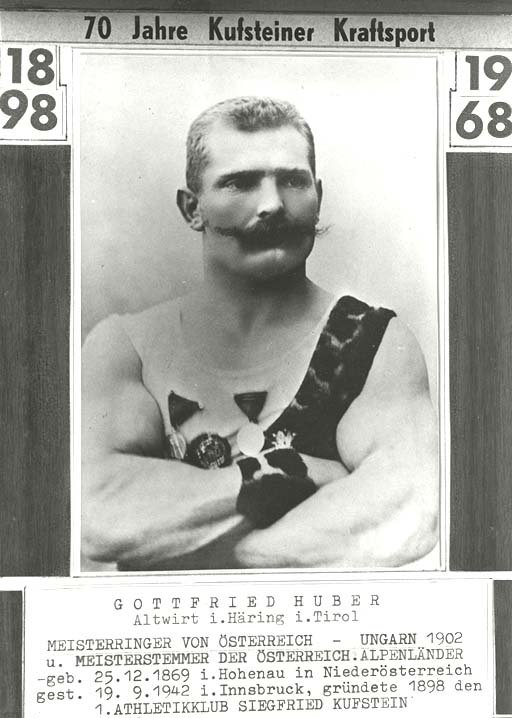 Gottfried Huber se narodil 25. prosince 1869 v Hohenau in Niederösterreich (dnes Hohenau an der March), což je nyní městys se 2 772 obyvateli, nachází se v okrese Gänserndorf na hranici s Českou republikou a se Slovenskem nedaleko soutoku Moravy a Dyje. Později se přestěhoval do Tyrolska a roku 1898 založil 1. Athletikklub Siegfried Kufstein. Roku 1902 se stal zápasnickým šampionem Rakouska-Uherska. Žil v obci Häring (dnes Bad Häring v okrese Kufstein) kde se živil jako hostinský. Celkově byl pevně spjat s celým okresem a dodnes na něj vzpomínají ve sportovním spolku města Wörgl. To leží na řece Inn 20 km od hranice s Německem a prochází jím železniční trať z Mnichova do Innsbrucku. Zajímavostí je, že v době velké hospodářské krize proslul Wörgl experimentem s lokální měnou. Starosta Michael Unterguggenberger se inspiroval teoriemi Silvia Gesella a rozhodl se čelit nezaměstnanosti a nedostatku peněz mezi občany vydáváním speciálních poukázek, které lidé dostávali za práci pro obec a mohli si za ně vybrat zboží v místních obchodech. Projektu se podařilo rozhýbat lokální ekonomiku a byl v médiích nazýván "zázrak ve Wörglu", v září 1933 však Rakouská národní banka nařídila jeho zastavení. Zmíněný sportovec a silák Gottfried Huber útrapy první světové války přežil a zemřel až 19. září 1942 v Innsbrucku ve věku 73 let.
