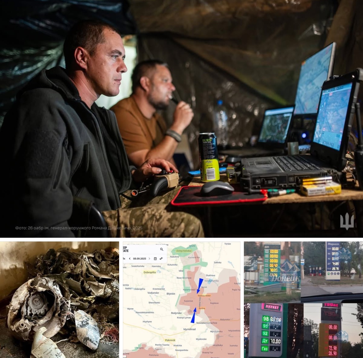 Foto: Dronaři v práci. | Zbytky rakety Iskander, která zasáhla budovu vlády. | Situace u Pokrovsku. | Situace v Doněcku.