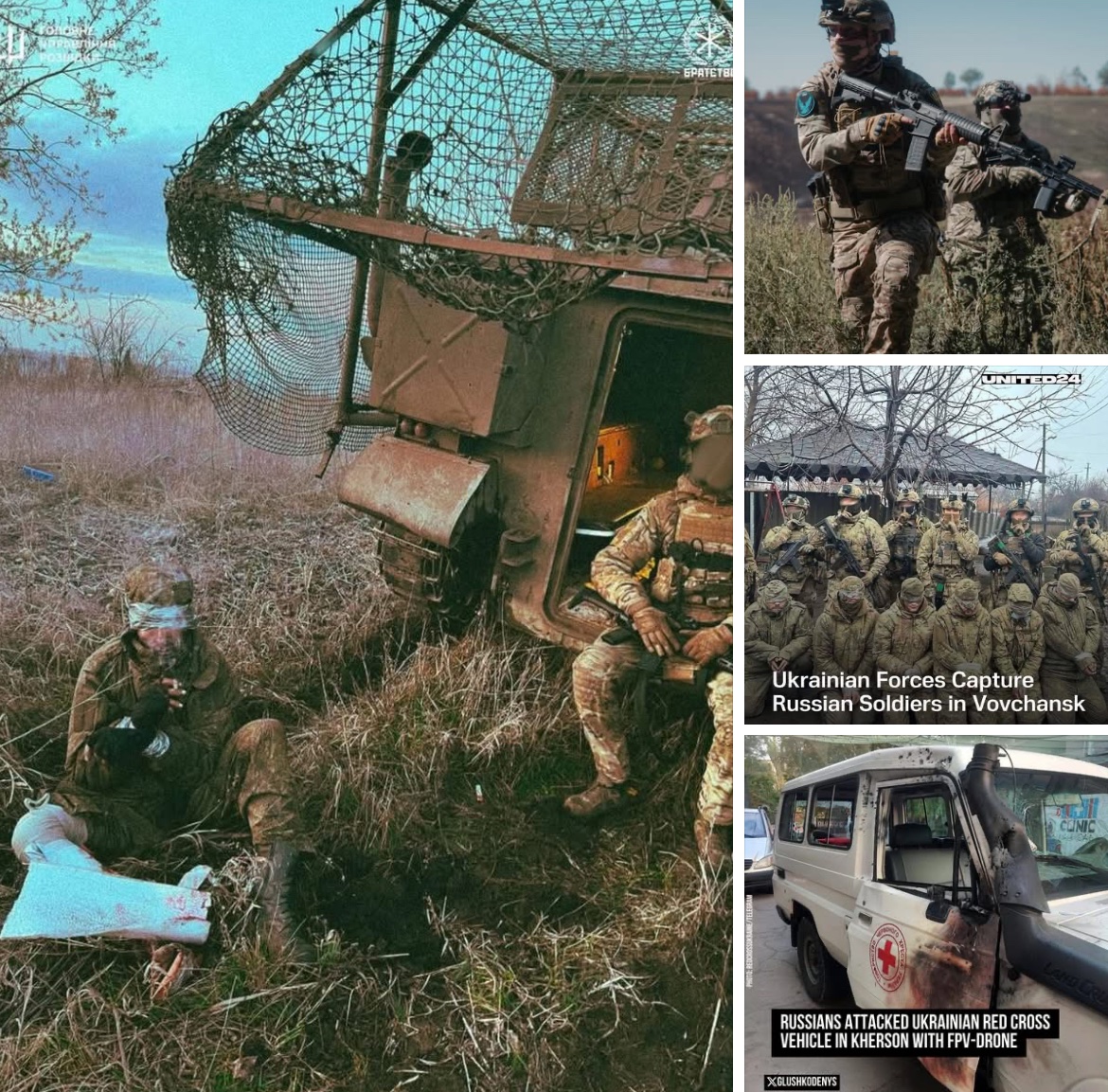 Foto: Přírůstek do fondu. | Mariňáky na cvičáku. | Zajatci od Vovčansku. | Zasažené vozidlo Červeného kříže.