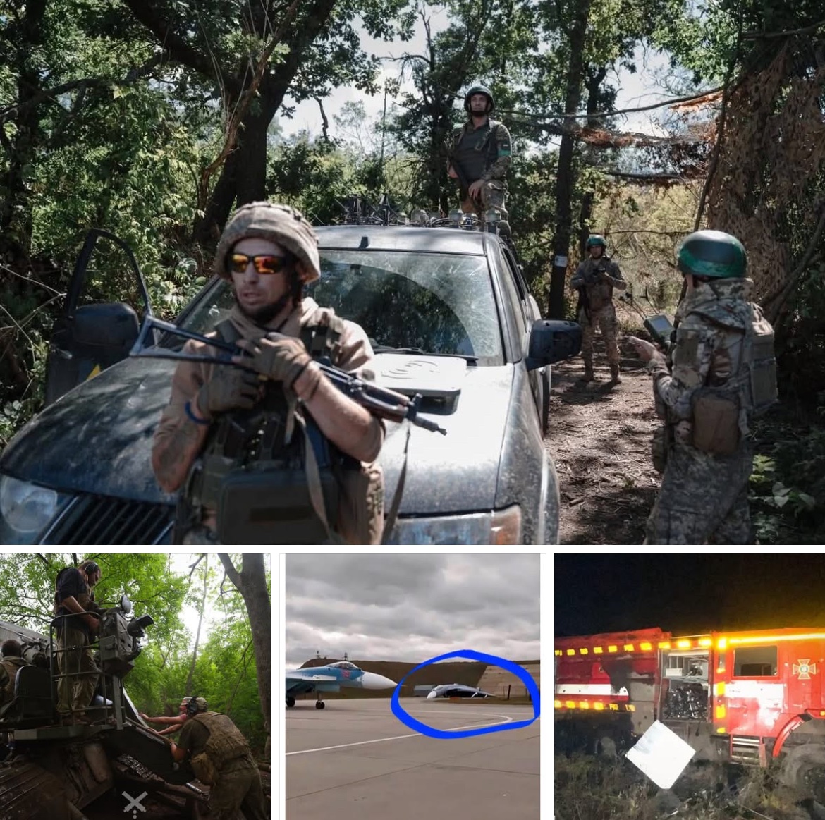 Foto: U Pokrovsku. | Pivoňka v akci. | Rusové omylem natočili nafukovací atrapu společně se záběry ze cvičení Zapad-2025. | Zasažený vůz hasičů.