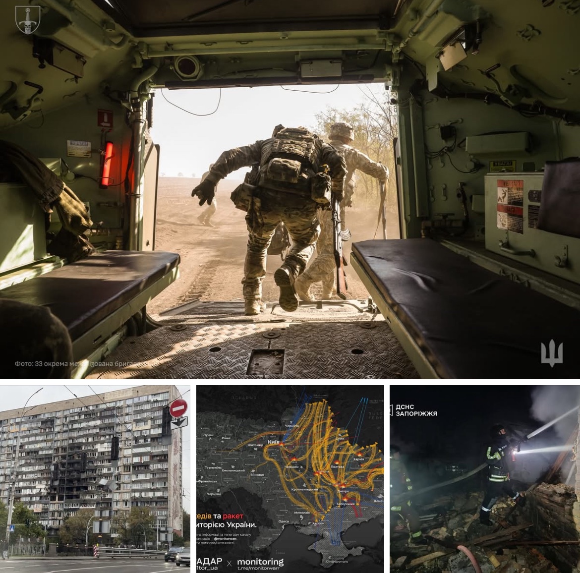 - Ukrajinský Naftogaz hlásí, že v noci byla Ukrajina pod útokem 381 ruských dronů a 35 raket/střel, jejichž cílem nebyl ani jeden vojenský objekt, ale pouze plynové instalace, a to s cílem způsobit na Ukrajině v příštích měsících humanitární krizi v důsledku nedostatku paliva a dodávek tepla.