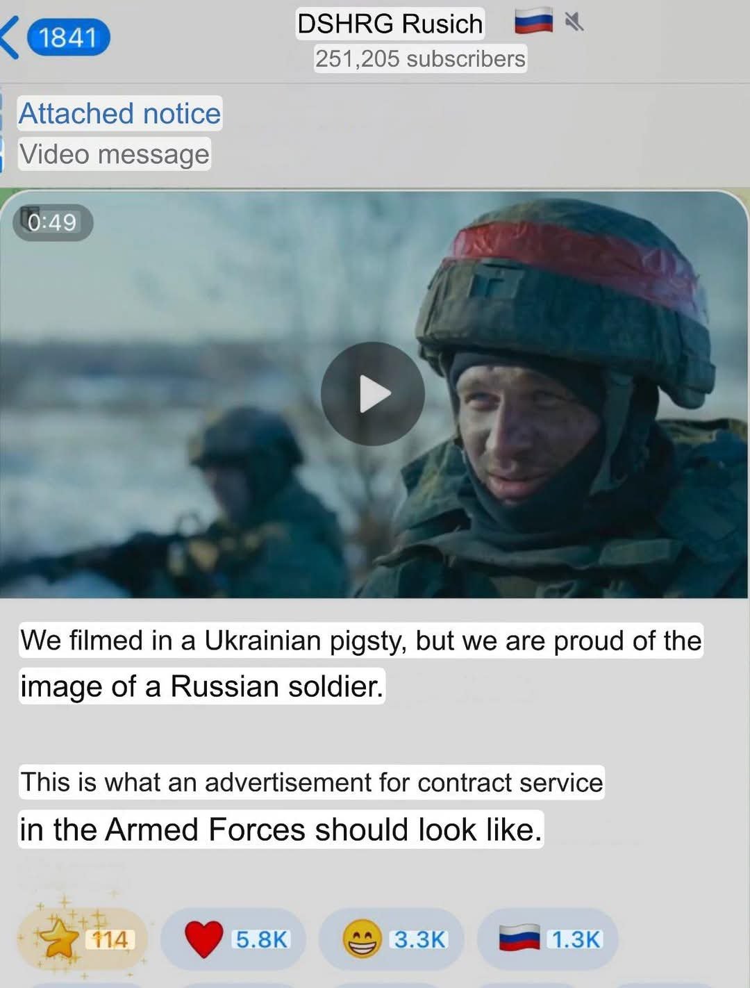 Válečné rituály a symboly: Kromě tradičních oslav konce 2. světové války (Velké vlastenecké války) se v posledních letech rozšířily různé akce, symboly (písmeno „Z“ od začátku invaze na Ukrajinu) a různé, které mají stvrdit jednotu národa a sílu státu. Naposledy například U chrámu Všech svatých na krvi v Jekatěrinburgu byl slavnostně otevřen památník slavné operaci "trubka" a byl náležitě vysvěcen. Památník je kopie trubky plynovodu, ve kterém ruští vojáci provedli speciální trubkovou operaci (část z nich tam umřela hned, část má silně poškození plíce). Následovalo na vypuštění holubic míru, protože Rusko, když chce mír, tak z nějakého důvodů místo ukončení své útočné války prostě jenom vypouští holubice.