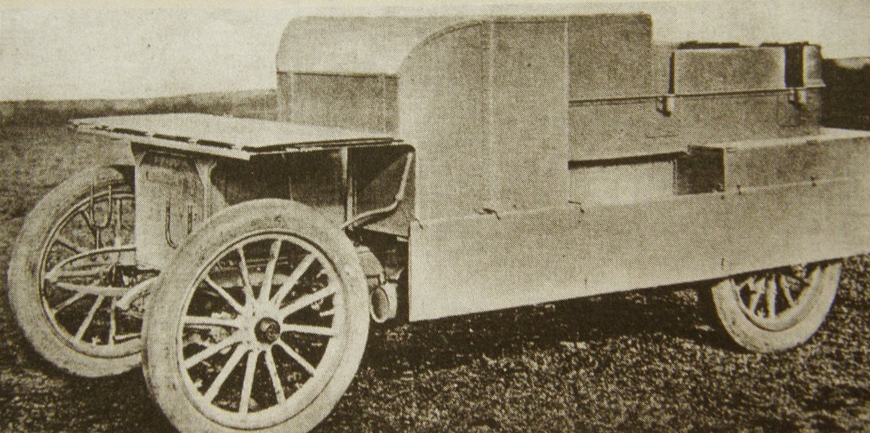 Zakladatelem strojírenské továrny Škoda v Plzni, byl český technik, industrialista a velkopodnikatel Emil Škoda - Emil Ritter von Škoda (1839-1900). Když zemřel, byla tato společnost přeorganizována na akciovou společnost a do jejího čela se postavil, jeho syn Karel (1878–1929). Karel Škoda pokračoval ve snaze svého předchůdce o rozvoj zbrojního oddělení, které si v té době již vydobylo výsadní postavení, v dodávkách pro rakousko-uherské námořnictvo. Začátkem nového století již Škodovka patřila mezi největší Evropské průmyslové konglomeráty. Krom osvědčených technologí se vedení společnosti snažilo udržet krok s moderními trendy a zabývat se výzkumem nových pokrokových konstrukcí. Krom né příliš úspěšného kulometu Škoda M1893, tak vznikl jako soukromá iniciativa podniku, i obrněný automobil. V roce 1905 oslovili zástupce společnosti Daimler, která se již dříve snažila nabídnout armádě, vlastní obrněný automobil Austro-Daimler Panzerkraftwagen. Obrněný automobil Austro-Daimler navrhl v roce 1903 Paul Daimler (1869-1945) na popud rakouského arcivévody Leopolda Salvátora Rakousko-Toskánského (1863-1931), který rozpoznal vojenský potenciál motorových vozidel. Práce na vozidle probíhaly v továrně Austro-Daimler ve Vídeňském Novém Městě a výsledek byl představen po třech letech prací. Vozidlo se účastnilo císařských manévrů v Těšíně, v roce 1906. Oproti očekávání konstruktérů, se vozidlo ukázalo být v terénu až neskutečně pomalé, téměř nejelo, jeho motor kouřil, byl velice hlučný a plašil koně poblíž, splašil koně náčelníka generálního štábu Friedricha von Beck-Rzikowsky (1830-1920), který shodil svého jezdce. Císař František Josef I. vozidlo zhodnotil, že je pro vojenské účely nepoužitelné, což zpečetilo jeho osud. Je zajímavé, že právě tímto obrněným vozidlem Austro-Daimler, se inspirovali i konstruktéři u Škodovky. Ač tento obrněný automobil u armády neuspěl, společnost Škoda očividně vycítila příležitost a nabízet jej na světových trzích. Některé konstrukční prvky přímo převzali a byť spolupráce se společností Daimler nevydržela dlouho a tato společnost později od spolupráce odstoupila, konstruktéři ze Škodovky získali dostatek zkušeností, aby práce dokončili. Základem se stal podvozek se dvěma tuhými nápravami, přičemž poháněna byla pouze zadní náprava. Odpružení bylo tvořeno podélnými listovými pery. Když situace dovolovala odklopení ochranných plechů, mohl být motor chlazen vzduchem. Pancéřová nástavba byla otevřená, tvořená ocelovými pláty o tloušťce 3 mm. Řidič seděl na výše položené sedačce, přičemž mu pro úplný výhled z vozidla chyběl průzor. Vozidlo disponovalo celkem šesti střelišti na otočných čepech, umístěných následovně (proporcionálně): 2 vlevo, 1 vpředu, 2 vpravo a 1 vzadu. Výzbroj byla tvořena dvojicí kulometů Škoda M1902 ráže 8 mm. Zásoby munice tvořily 4 schránky po 510 nábojích, umístěných uvnitř vozidla. Dále bylo vozidlo vybaveno dvojicí dvojnožek pro případné nasazení mimo vozidlo. Tento zajímavý projekt skončil u výroby jediného funkčního prototypu v roce 1907 a je velice pravděpodobné, že jeho funkčnost byla stejně tragická jako u obrněného automobilu Austro-Daimler, z něhož vycházel. Vozidlo se nepodařilo udat na trhu a k výrobě obrněných automobilů se Škodovka vrátila až o nemálo let později.