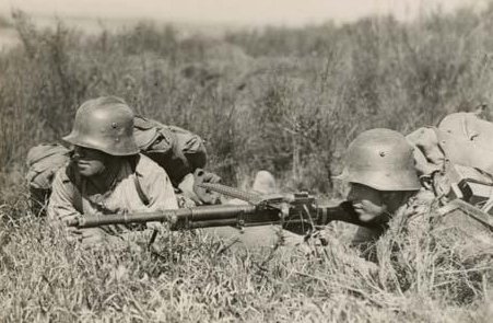 Na té druhé (pod textem) to má být kulomet Darne vz. 1922 ráže 8 mm (Mannlicher). Výrobcem byl Établissements Darne, Saint-Étienne. Vyrobeno bylo celkem 11 000 kusů a váha prázdné zbraně 8,4 kg. Asi pozemní verze, ale jinak se používal i na letounech. Československá armáda je nakoupila, v počtu odhadem stovek kusů (moc ne)