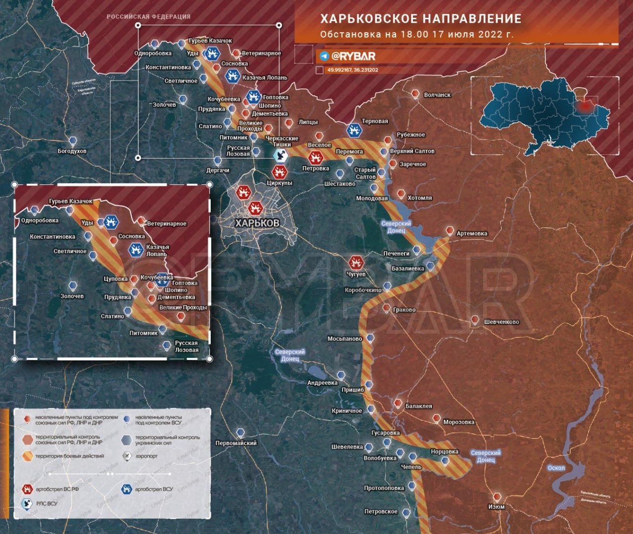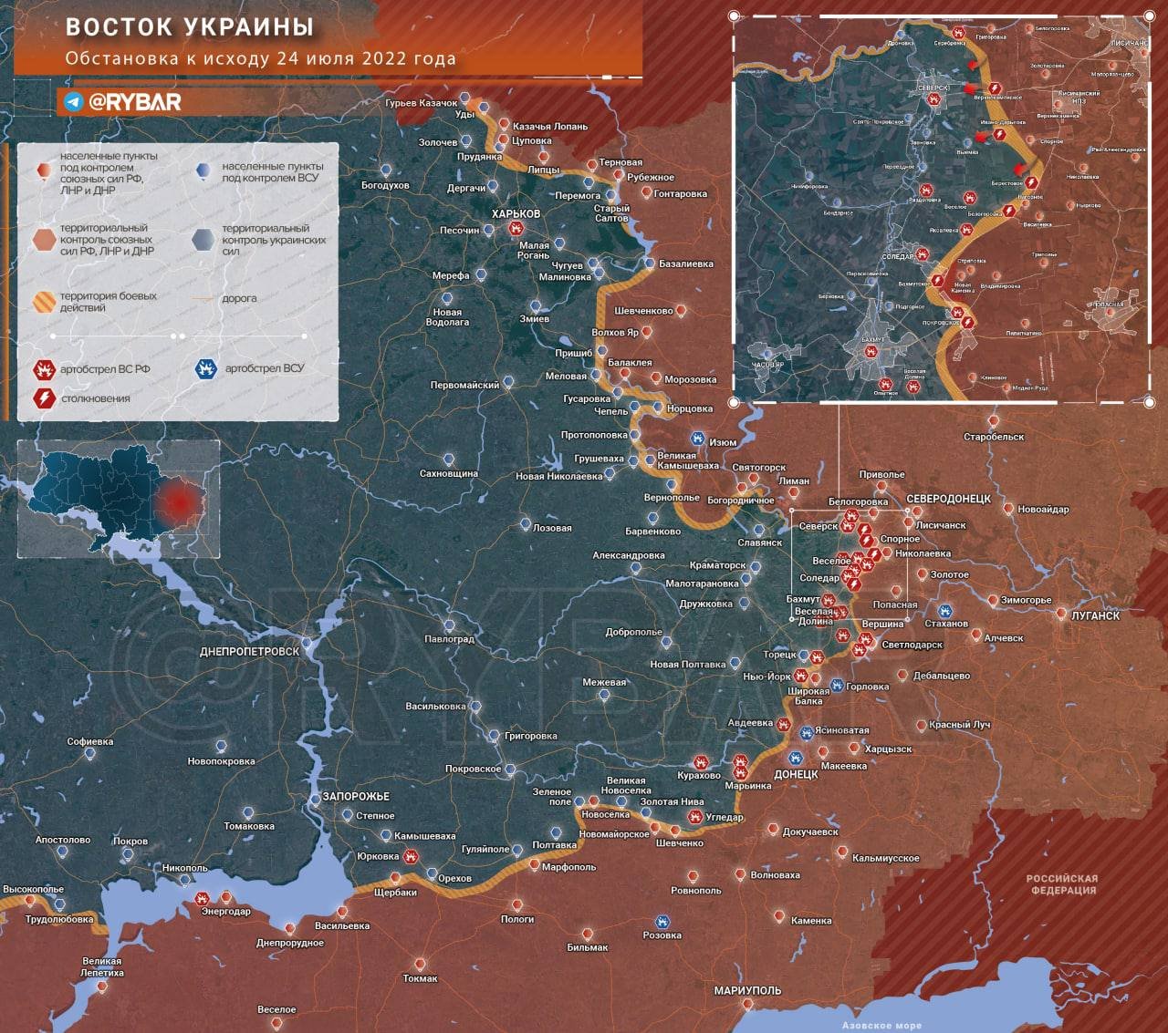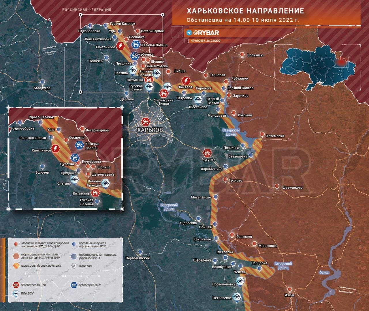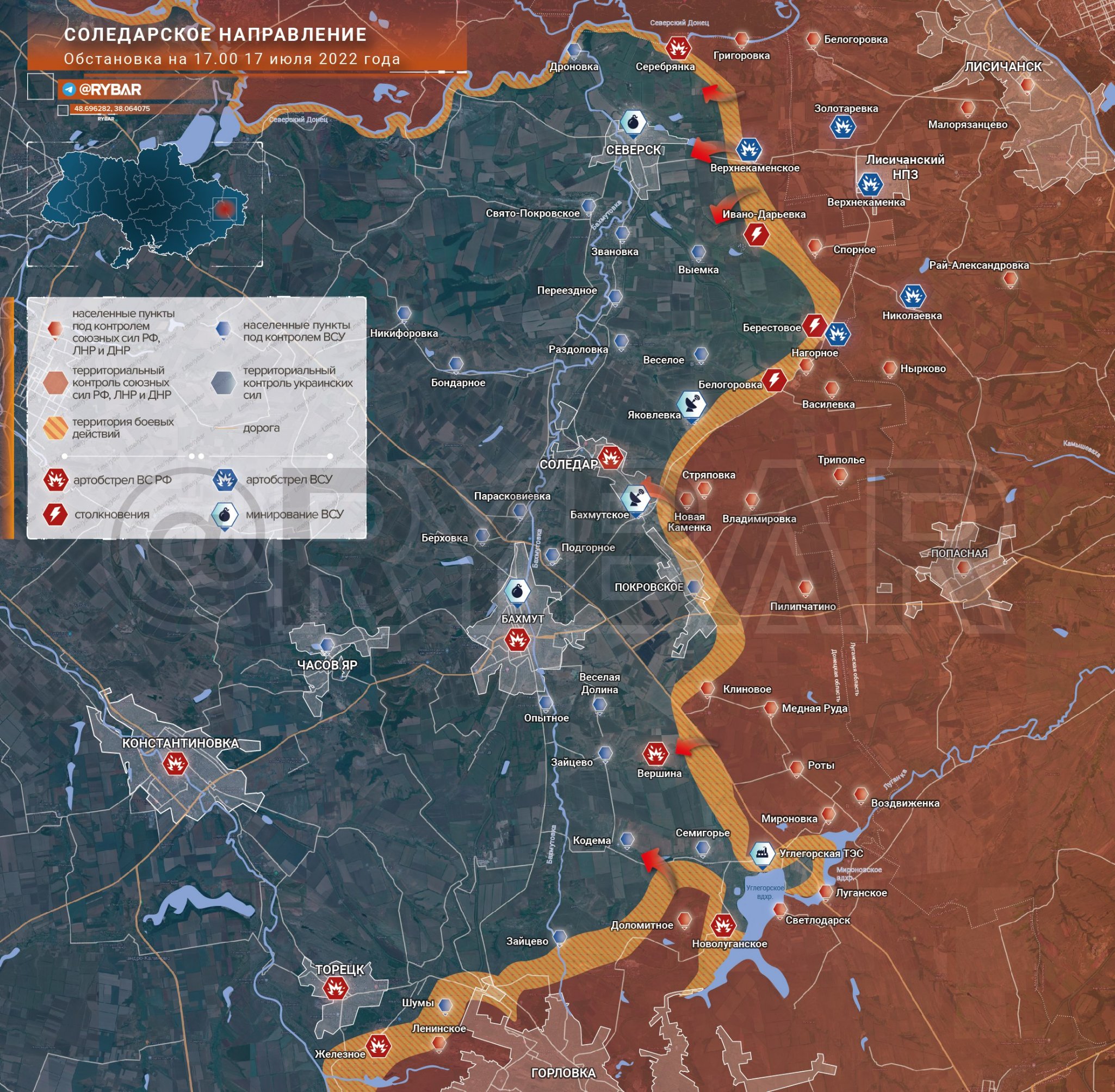 ➖Zprávy na sociálních sítích o městských bojích v Seversku jsou prozatím předčasné. V okolí Ivano-Darjevky pokračují střety. Na severu se bojuje o Verchnekamenskoje, jehož dobytí umožní dosáhnout Severska z východu.