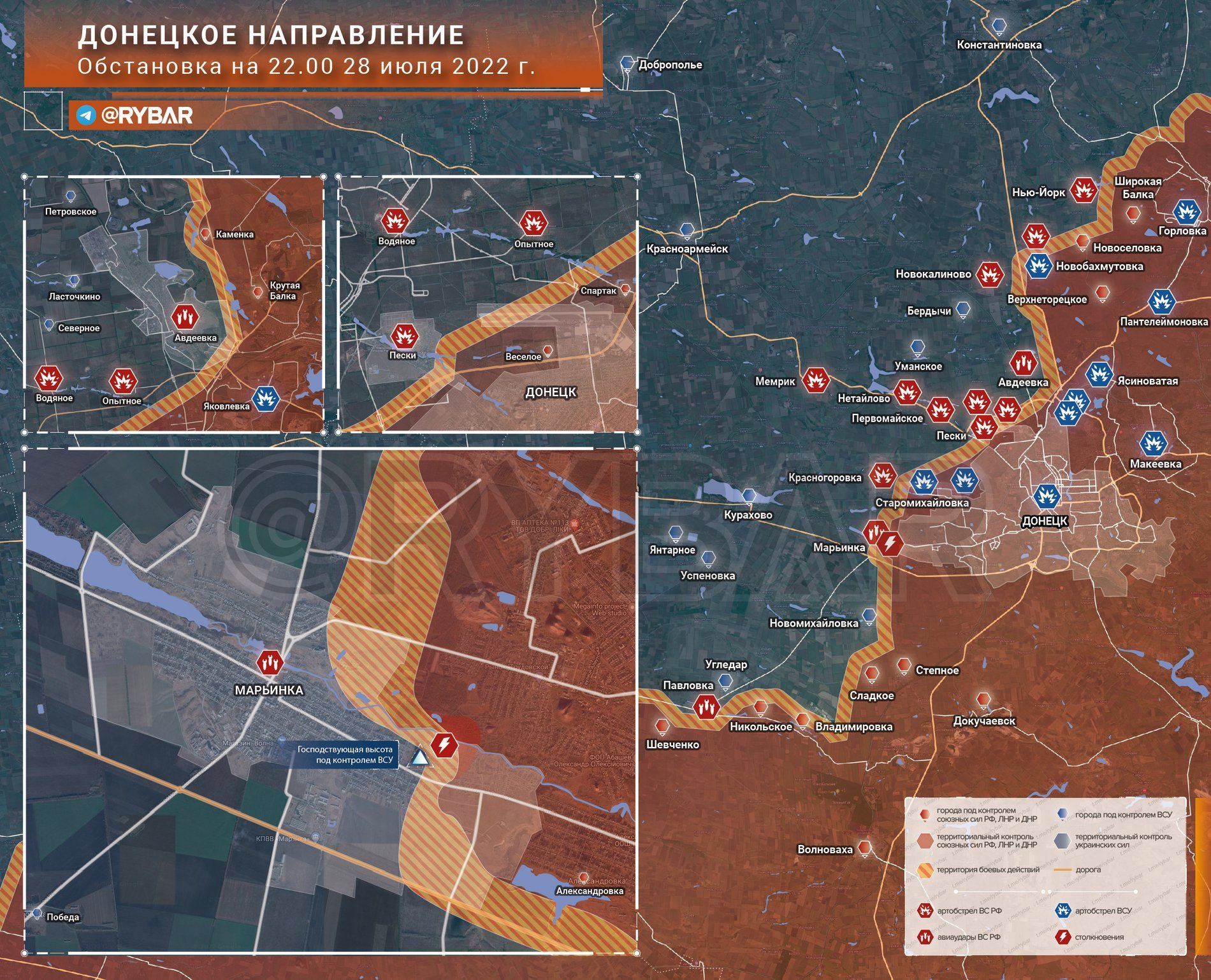 V našem videovysvětlení (https://t.me/rybar/35731) jsme podrobně vysvětlili, proč Avdějevka dosud nebyla obsazena a jaké jsou potíže s jejím obsazením. Pokud jste se na video ještě nepodívali, shrňme si ho jednoduše: zabráním Avdijivky se hrozba ostřelování neodstraní a kromě samotné Avdijivky je třeba vytvořit široké nárazníkové pásmo.