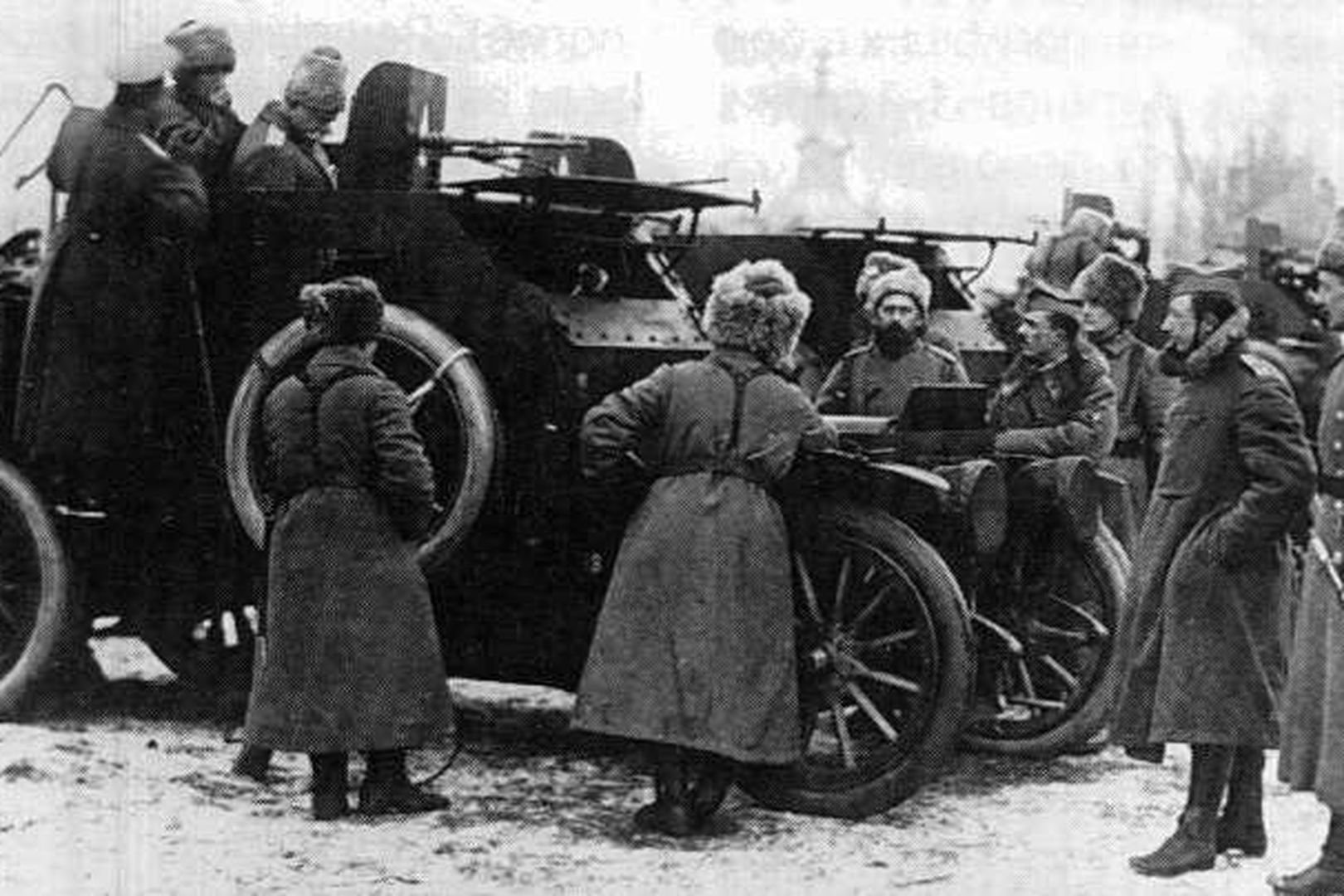Na žádost ruského cara Mikuláše, schválil belgický král Leopold vyslání obrnění automobilů do Ruska. K této službě se přihlásilo 333 dobrovolníků, kteří dostali kožené uniformy módního salonu Madam Pagin. Celkem v Corps Expeditionnaire des Autos-Canons-Mitrailleuses Belges en Russie sloužilo 444 vojáků. Do Archangelsku připlul belgický expediční sbor dne 13. října 1915. V Carském selu absolvovali Belgičané přehlídku před samotným carem a následně se jednotka přesunul k IX. sboru do Haliče. Po přidělení ruských styčných důstojníků, kteří rovněž plnili funkci tlumočníků, vzniklo tak pět baterií. Jednotka byla evidována jako dělostřelecký útvar a dostala označení Belgijskij broněvoj avtomobilnyj division. Vojáci měli k dispozici 56 automobilů Mors-Minerva a Peugeot, 20 motocyklů Harley Davidson a Indian, a 120 jízdních kol. Pokud jde o samotné obrněné automobily, tak tři vozidla byla velitelská, šest obrněných s námořním kanonem ráže 37 mm a jedním až dvěma kulomety, a čtyři kulometná s dvojicí kulometů. Ostatní vozidla (43) byla logistická, zajišťující transport potravin, pohonných hmot a maziv, munice, pojízdné dílny a ambulance. Kola využívala cyklistická rota, která nahrazovala pěchotu. Samotná ruská armáda disponoval v roce 1915 zhruba 250 obrněnými automobily, belgický sbor tak znamenal především morální vzpruhu. Do bojů se jednotka dostala až koncem ledna 1916. Vojáci se ale proslavili hrdinskými činy a Belgičané tak obdrželi 104 řádů Svatého Jiří a velkého uznání se dostalo hlavnímu lékaři. Tři obrněné automobily byly zničeny v boji a šestnáct Belgičanů v bojích padlo.