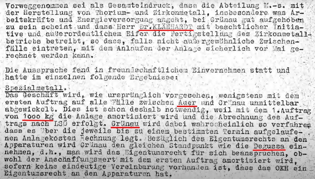 Problém byl nedostatek pracovních sil a vápníku, který je základní složkou ve výrobním procesu kovového uranu, viz PCA 1/559 Klanhardt's Spezialmetall-Projekt, Degussa to Riehl, červenec 1941; Auer do Degussy, 24. října 1941.