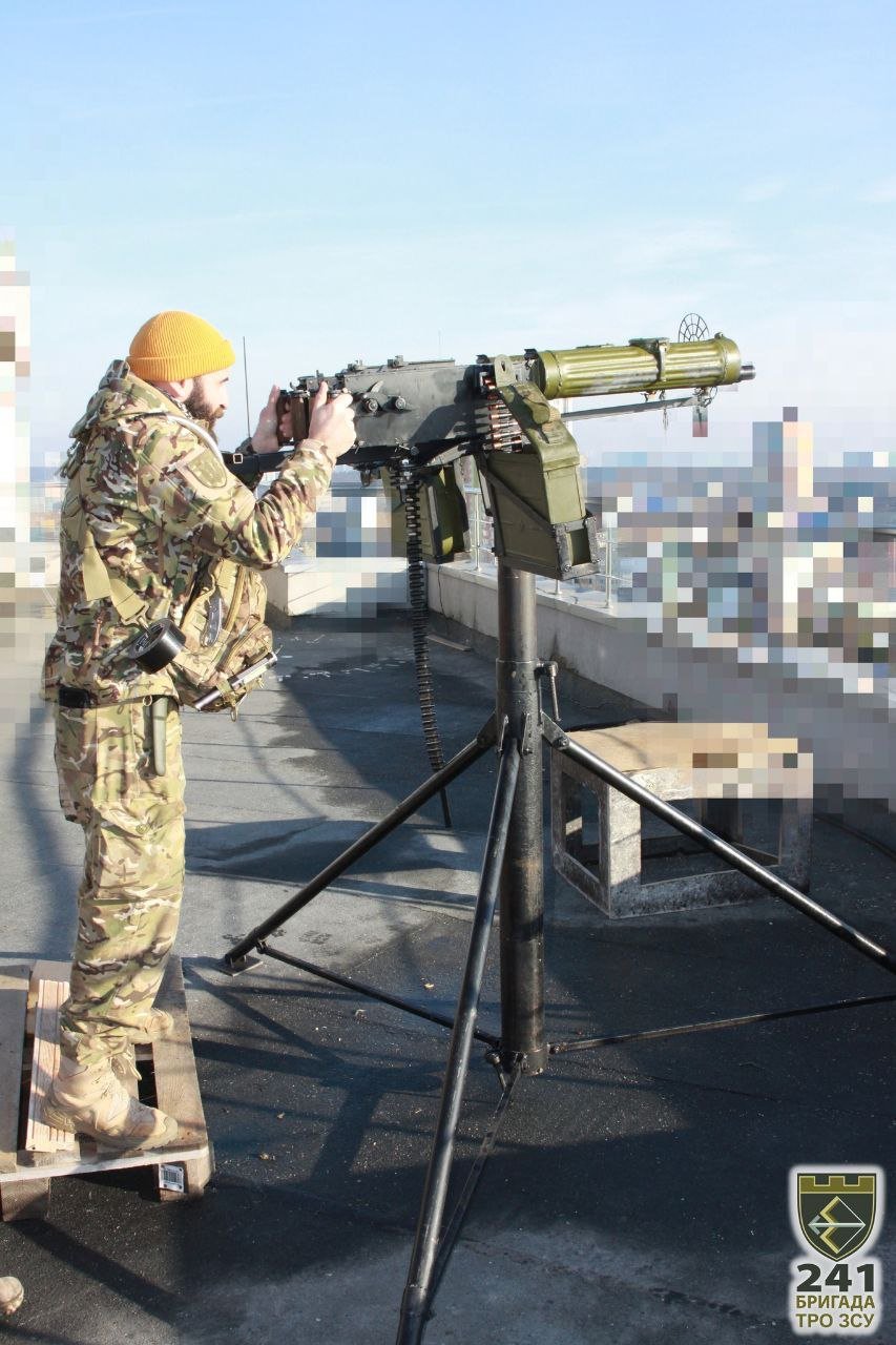 Kyjev. Kulometné dvojče Maxim, protidronová obrana.