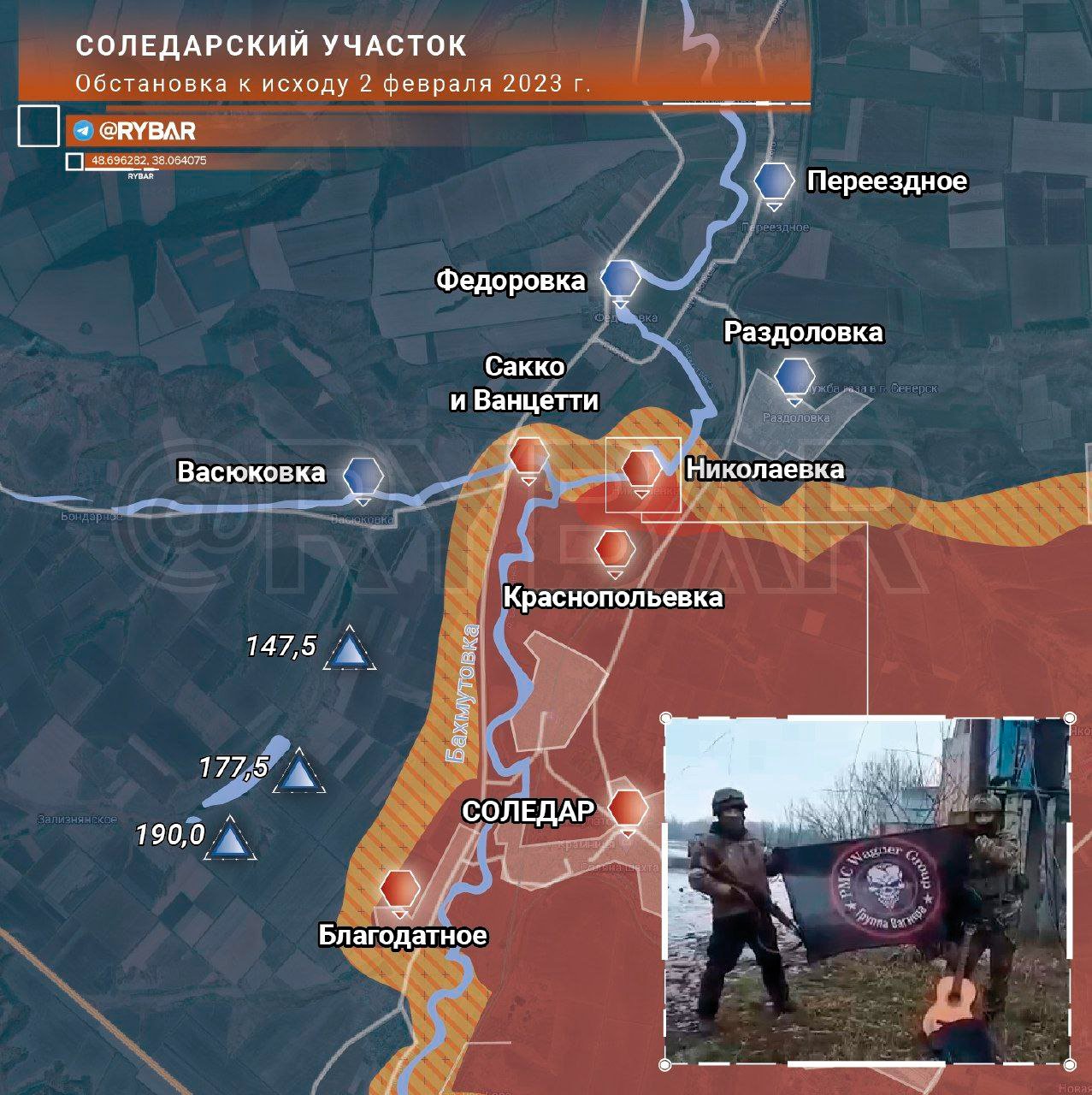 V oblasti Soledar obsadily útočné jednotky PMC Wagner vesnici Nikolajevka, jejíž dobytí otevírá cestu k linii Fedorovka-Razdolovka. Podle některých zpráv začal nepřítel stahovat své jednotky z Bělogorska.