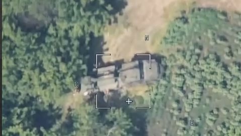 Útok na pozici samohybné houfnice na kolovém podvozku. Podle ruských zdrojů by se mělo jednat o modernizovanou ShH Bogdana nebo švédský Archer