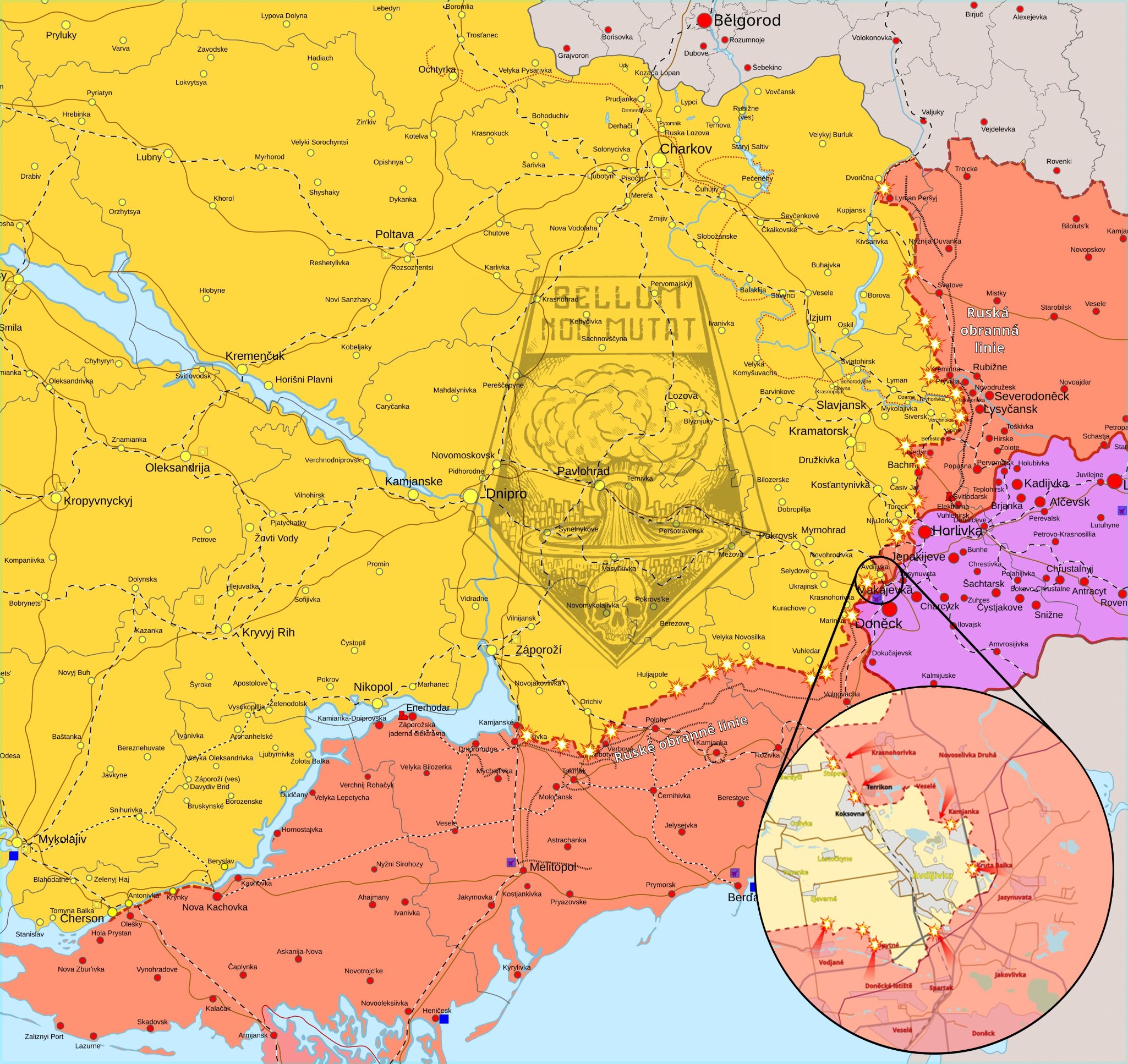 Doněcká fronta: Rusové opět bez úspěchu útočili na zahrádkovou oblast Zarja. U Stepového se ukrajinským ozbrojeným silám podařilo vytlačit okupanty zpět k železnici na východní okraj lesního remízku. Na východě samotné Avdijivky tlačí Rusové směrem na jih v zahrádkářské kolonii Ivuška 2. Je možné, že se zde okupantům podařilo postoupit o pár desítek metrů, ale důkazy pro tento postup jsou zatím nepřesvědčivé. Východně od Ivušky 2 probíhají poměrně silné boje v zemi nikoho a počítáme s tím, že se zde tlak okupantů směrem na jih v dalších dnech jen zvýší. Boje u industriální zóny Avdijivky a Vodjane sice nadále probíhají, ale jejich intenzita je minimální. Rusové nadále tlačí ze severu i z jihu Pervomajského a snaží se postoupit dále podél Peršotravnevé ulice. Dnes jsme zde však nezaznamenali žádný postup. Na západě Marjinky probíhají boje na stejných místech, jako včera. Jedná se o území zahrádkářské kolonie Vrožaj ve východní části Heorhijivky. Je možné, že se rusům podařilo na jihovýchodě Heorhijivky postoupit o několik desítek metrů, ale důkazy jsou zatím nejednoznačné. Několik kilometrů jižně od Novomychajlivky ruské jednotky postupovaly podél rokle Solonenka o necelý kilometr.
