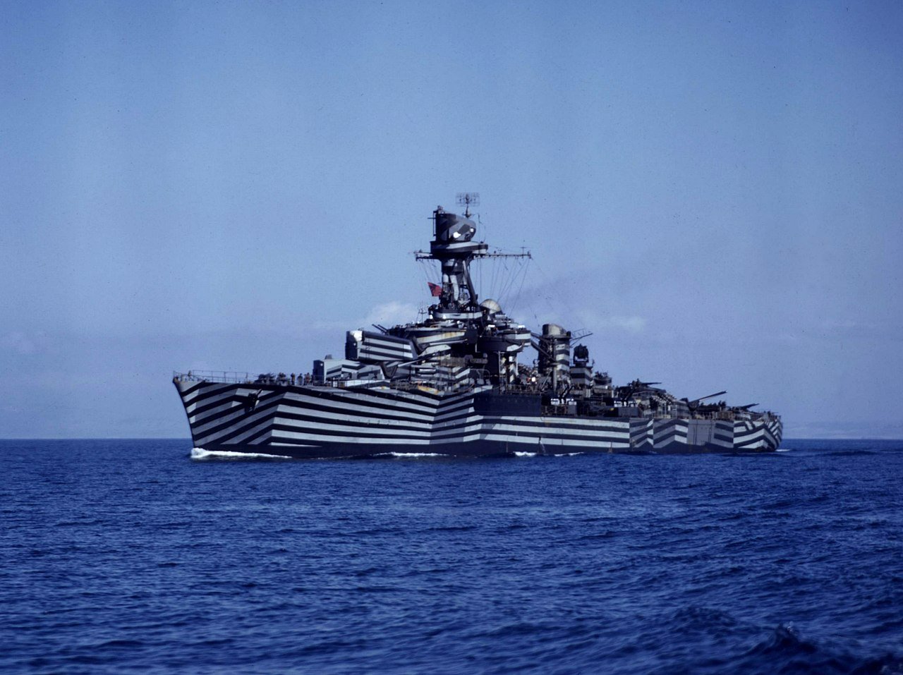 Na tenhle obrázek si pamatuji, díky té bizarní kamufláži mi to uvízlo v paměti :lol: Je to francouzský křižník Gloire (třída LaGalissonniere).